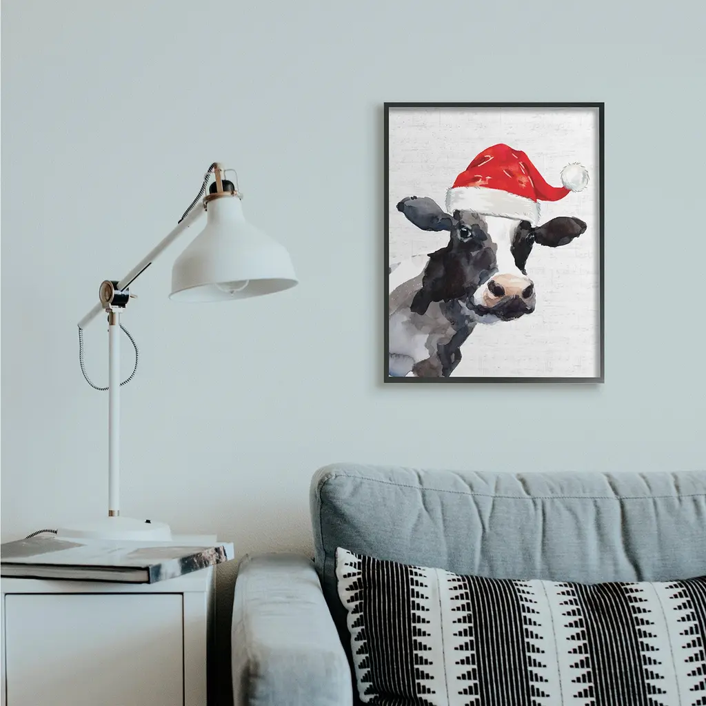 Stupell Country Farm Cow Red Santa Clause Hat Framed Wall Art - 24 X 30 - Black