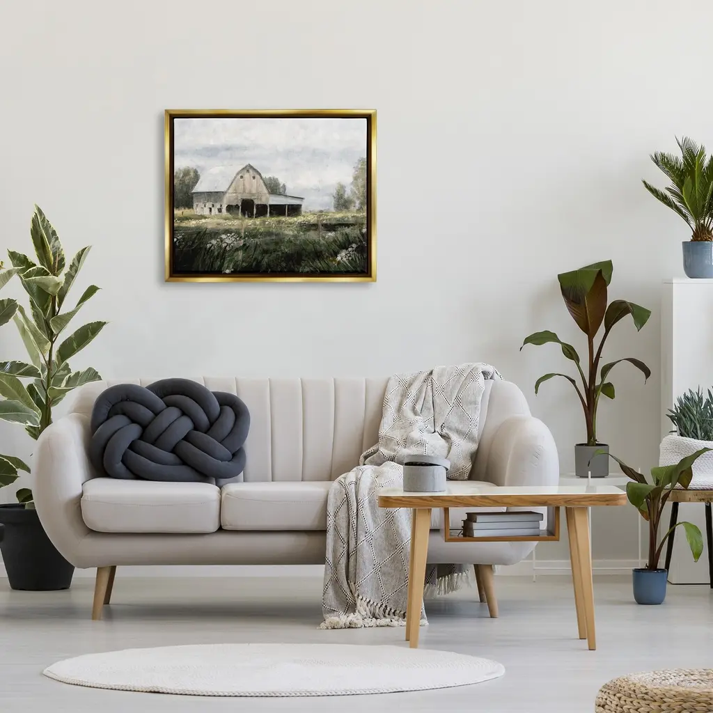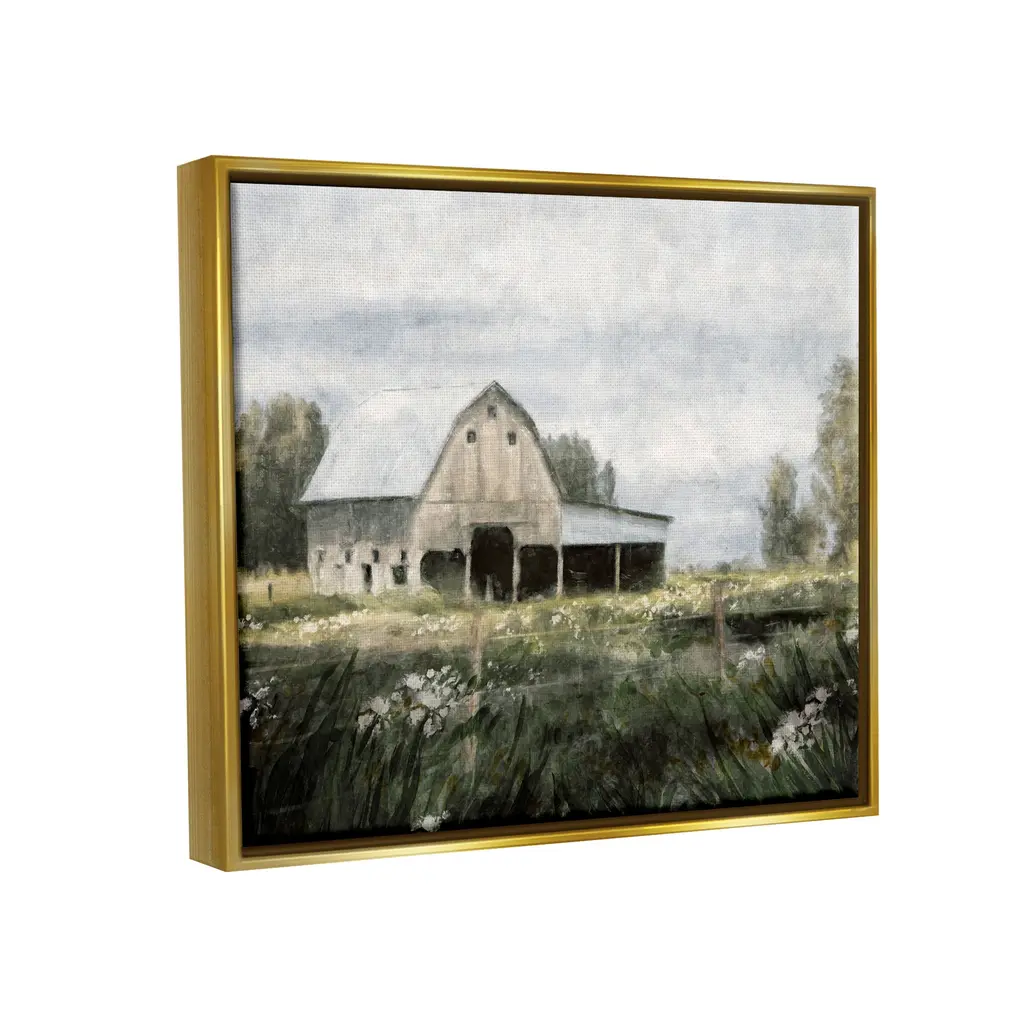 Elevate your home or office to the next level with Stupell Framed Floating Canvas Wall Art. Our premium hand-stretched canvas is mounted securely into a sturdy lightweight frame. The museum-style gap between the wrapped canvas and the box frame gives the illusion of floating artwork. Stupell Wall Art is made in the USA.Features: Dimensions: 21 x 1.7 x 17 Frame, 20 x 1.5 x 16 Canvas ArtFloating Frame Sizes Include Standard: 21 x 1.7 x 17 Oversized: 31 x 1.7 x 25Wall Art is Ready to Hang - No Installation or Hardware Needed. For Easy Set Up Lean or Layer Artwork on Shelf or Against Wall.Our elevated 1.7" Thick Floating Frame is the perfect complement to our canvas style Wall Art. We use only the highest quality inks in house with industry leading printing solutions. Canvas is hand stretched over a durable wood foundation and then mounted securly into a Modern Box Frame. Made in the USA.Artwork Relates To: Grass, Countryside, Rural, Shelter, Barn, Field, PaintingDesign by Nina Blue