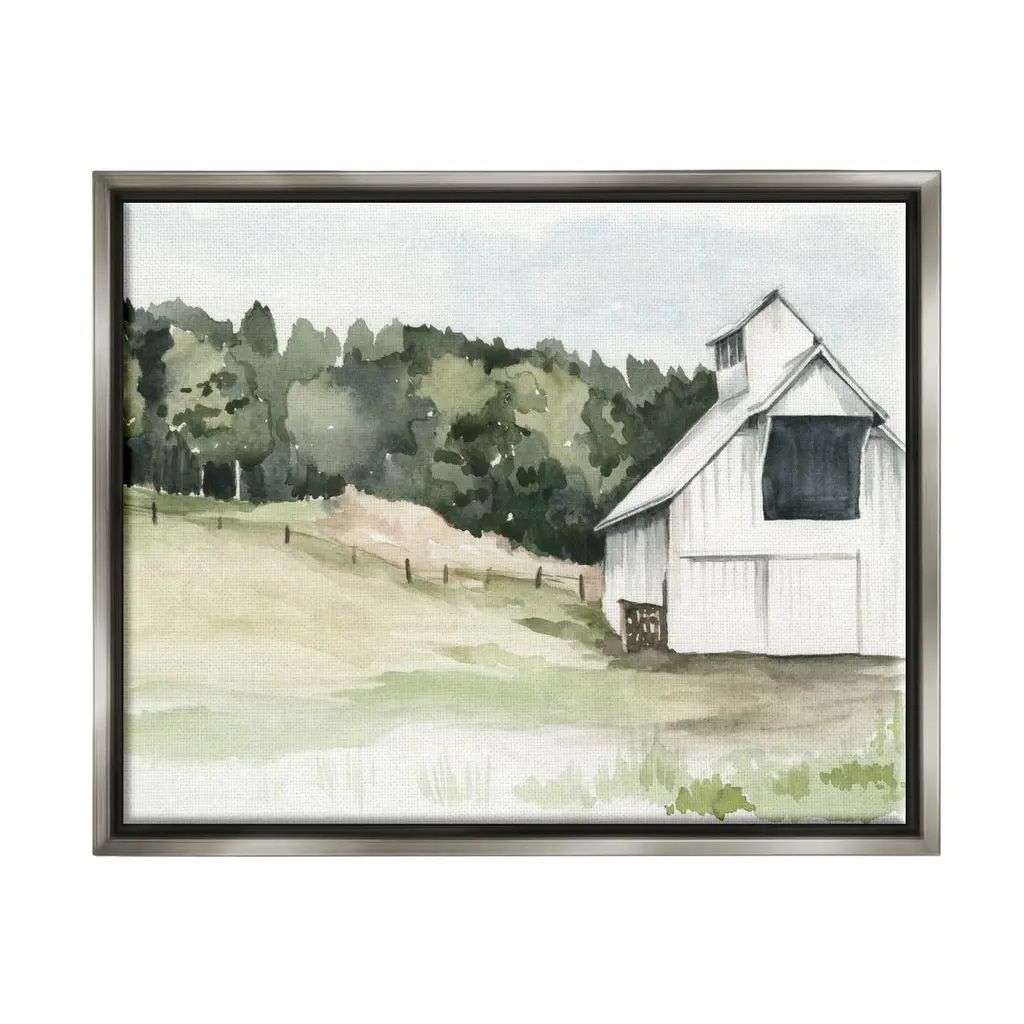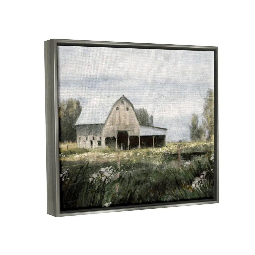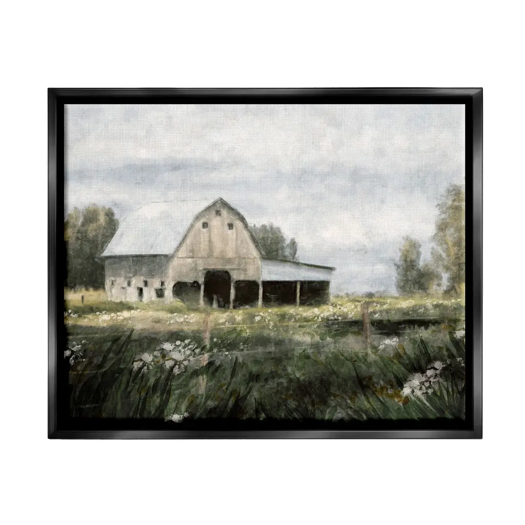 Elevate your home or office to the next level with Stupell Framed Floating Canvas Wall Art. Our premium hand-stretched canvas is mounted securely into a sturdy lightweight frame. The museum-style gap between the wrapped canvas and the box frame gives the illusion of floating artwork. Stupell Wall Art is made in the USA.Features: Dimensions: 21 x 1.7 x 17 Frame, 20 x 1.5 x 16 Canvas ArtFloating Frame Sizes Include Standard: 21 x 1.7 x 17 Oversized: 31 x 1.7 x 25Wall Art is Ready to Hang - No Installation or Hardware Needed. For Easy Set Up Lean or Layer Artwork on Shelf or Against Wall.Our elevated 1.7" Thick Floating Frame is the perfect complement to our canvas style Wall Art. We use only the highest quality inks in house with industry leading printing solutions. Canvas is hand stretched over a durable wood foundation and then mounted securly into a Modern Box Frame. Made in the USA.Artwork Relates To: Grass, Countryside, Rural, Shelter, Barn, Field, PaintingDesign by Nina Blue