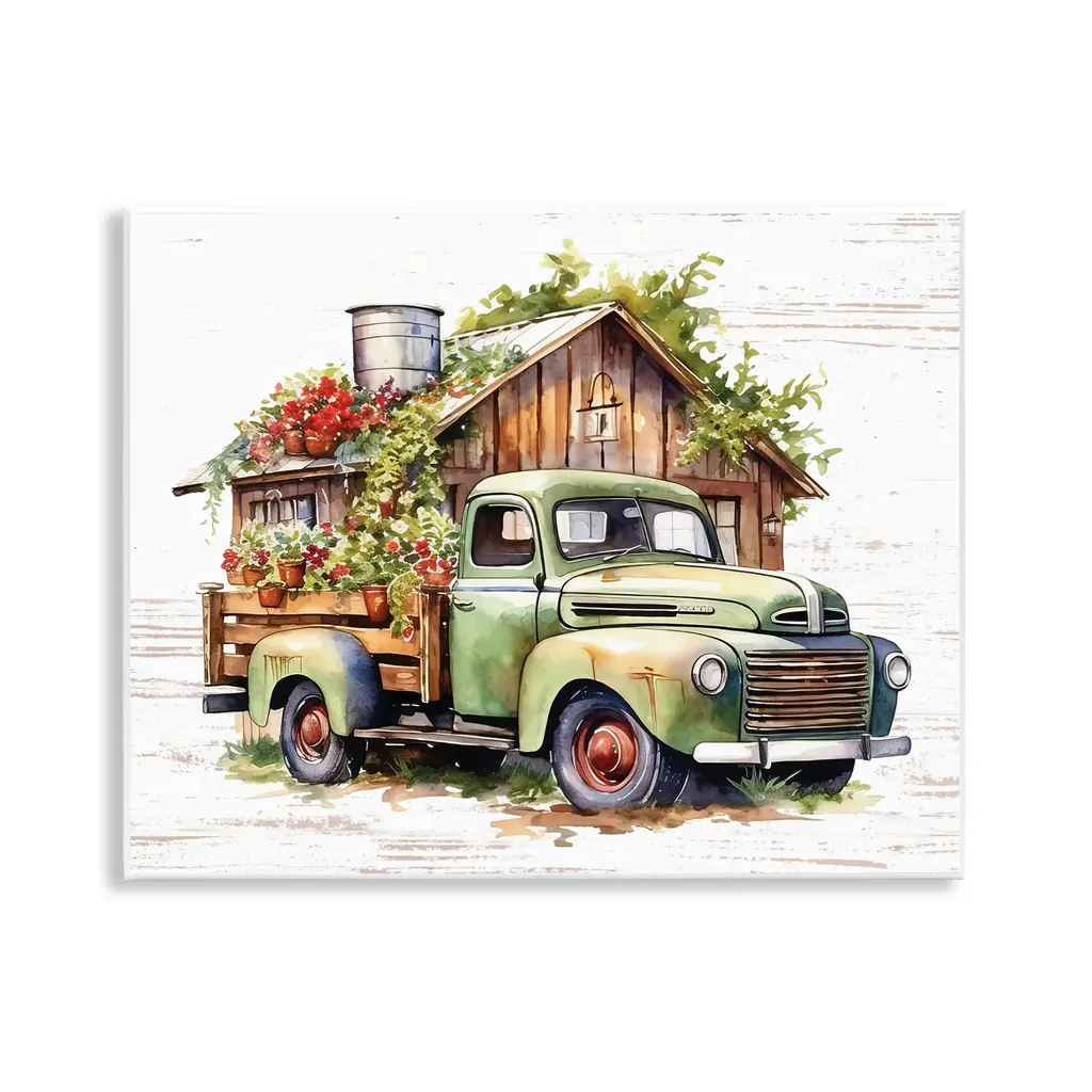 Our wall plaques start as high-quality lithograph prints mounted on durable 0.5-inch thick MDF wood. Each piece is hand finished and comes with a fresh layer of white foil on the sides to give it a crisp, clean look. Plaques arrive ready to hang without installation and come with removable plastic corners to keep them from damage in transit. Stupell Wall Art is made in the USA.Features: Dimensions: 14 x 0.5 x 11 InchesWall Art is Ready to Hang with Hardware Free Hanging. No installation required. For Easy Set Up Lean or Layer Artwork on Shelf or Against Wall.All of our wall plaques start off as high quality lithograph prints that are then mounted on durable 0.5 inch thick MDF wood. Each piece is hand finished and comes with a fresh layer of foil on the sides to give it a crisp clean look. Made In USA.Artwork Relates To: Pickup Truck, Transportation, Truck, Vehicle, Flower, Plant, Floral, Farmhouse, Country, CottageDesign by Lettered and Lined