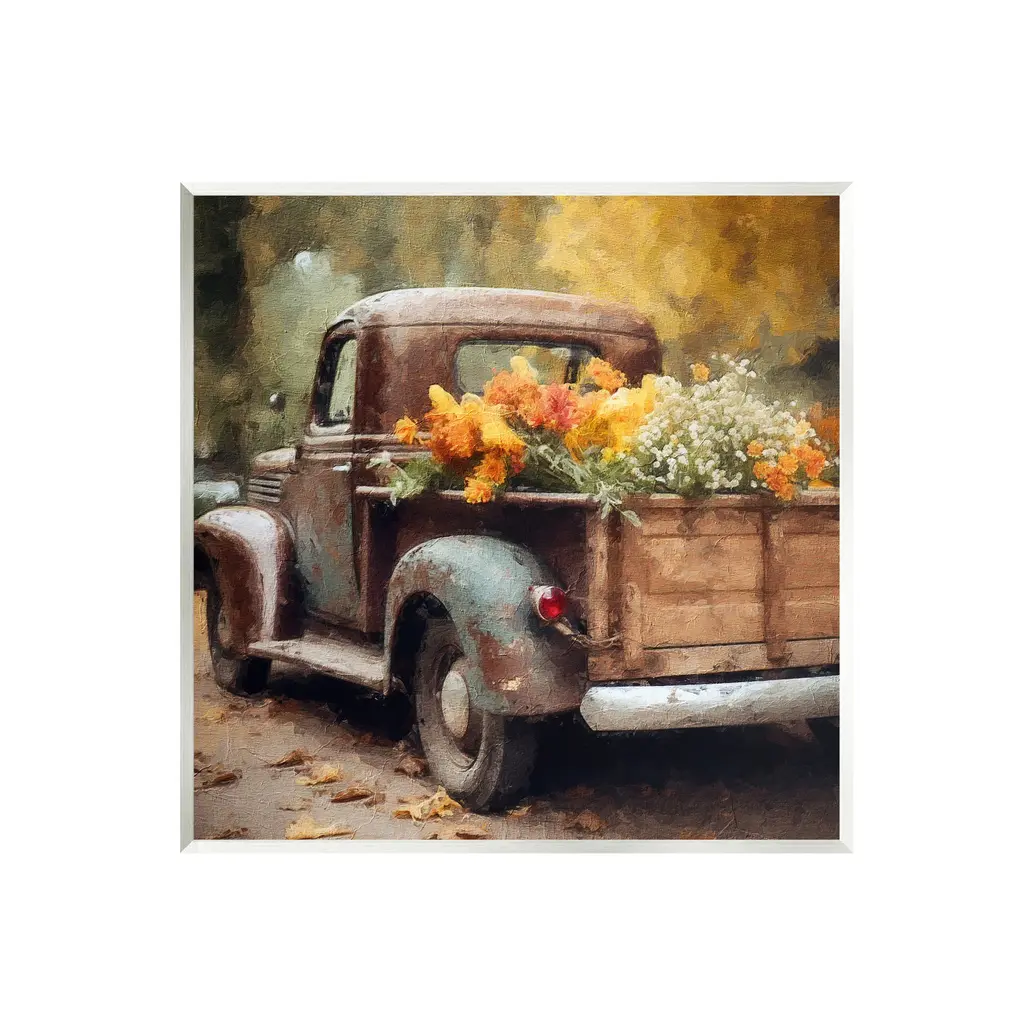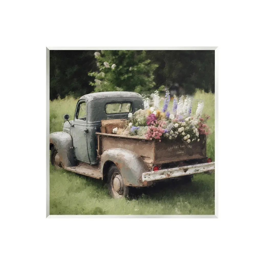 Our wall plaques start as high-quality lithograph prints mounted on durable 0.5-inch thick MDF wood. Each piece is hand finished and comes with a fresh layer of white foil on the sides to give it a crisp, clean look. Plaques arrive ready to hang without installation and come with removable plastic corners to keep them from damage in transit. Stupell Wall Art is made in the USA.Features: Dimensions: 12 x 0.5 x 12 InchesWall Art is Ready to Hang with Hardware Free Hanging. No installation required. For Easy Set Up Lean or Layer Artwork on Shelf or Against Wall.All of our wall plaques start off as high quality lithograph prints that are then mounted on durable 0.5 inch thick MDF wood. Each piece is hand finished and comes with a fresh layer of foil on the sides to give it a crisp clean look. Made In USA.Artwork Relates To: Pickup Truck, Transportation, Truck, Vehicle, Plant, Flower, Flower Arrangement, Vintage, CountryDesign by LSR Design Studio