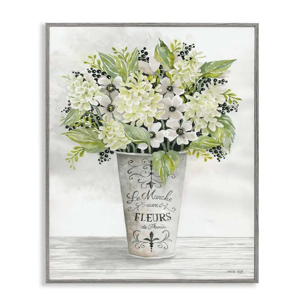 Our Framed Giclee Wall Art adds a touch of class to any space in your home or office. Frames are available in three alluring styles: black, gray farmhouse and white. Our textured artwork will add more depth and dimension to any space. Each piece is mounted with a 1.5 inch thick wood grain frame that is ready to hang! Looking for a statement piece? We have oversized artwork available. Room Type: Living Room, Den, Hallway, Office, Entryway, Study, Dining Room or Bedroom, Guest Room, Studio, Dorm or BoudoirFeatures: Dimensions: 11 x 1.5 x 14 FramedFramed Giclee Sizes Include Standard: 11 x 1.5 x 14 Large: 16 x 1.5 x 20 Oversized: 24 x 1.5 x 30Wall Art is Ready to Hang - No Installation or Hardware Needed. For Easy Set Up Lean or Layer Artwork on Shelf or Against Wall.Our giclée prints are carefully mounted on a durable MDF backing, and then perfectly finished in a 1.5 inch thick woodgrain frame. Mounted frame colors include black, gray farmhouse and white. Made In USA.Artwork Relates To: Flower, Plant, Petal, Floral, Jar, Garden Blooms, HydrangeaDesign by Pam Britton