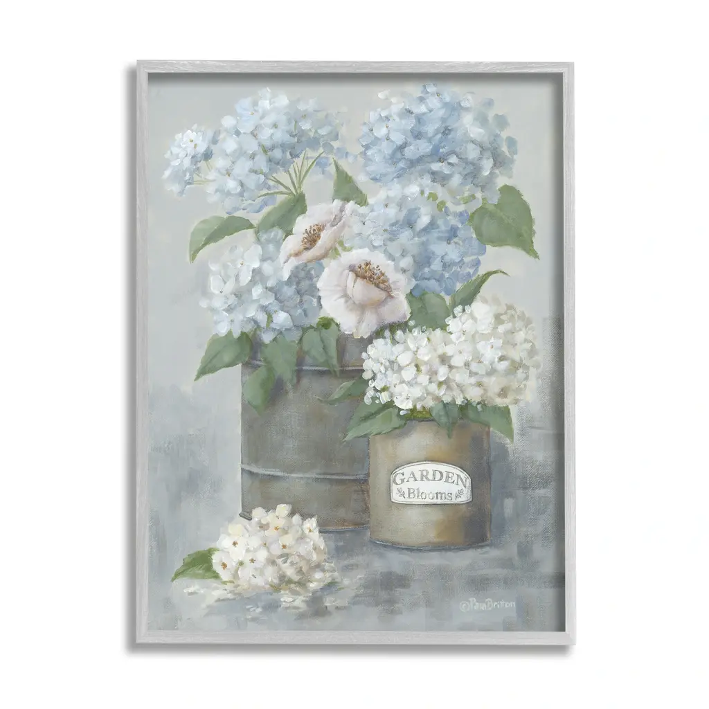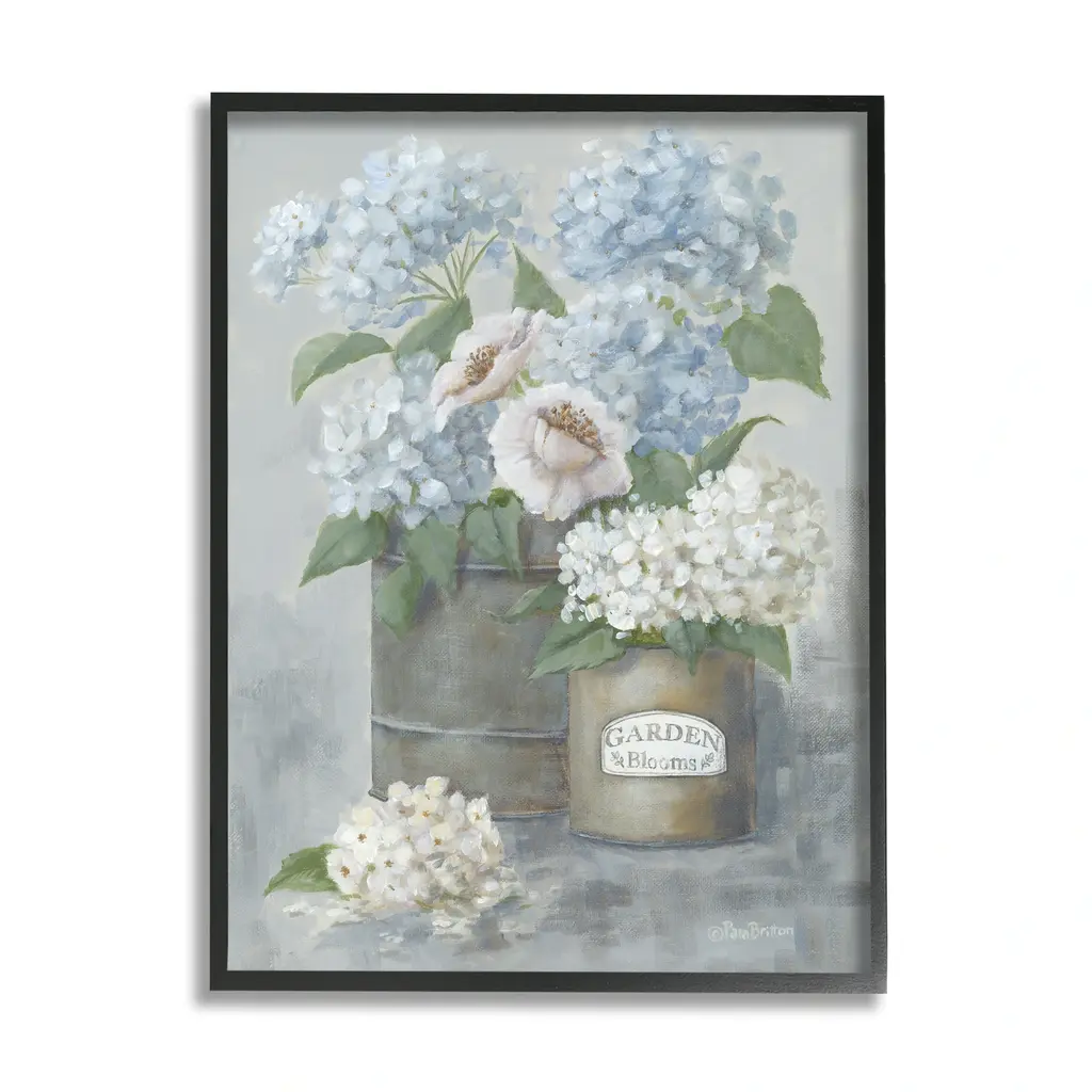 Our Framed Giclee Wall Art adds a touch of class to any space in your home or office. Frames are available in three alluring styles: black, gray farmhouse and white. Our textured artwork will add more depth and dimension to any space. Each piece is mounted with a 1.5 inch thick wood grain frame that is ready to hang! Looking for a statement piece? We have oversized artwork available. Room Type: Living Room, Den, Hallway, Office, Entryway, Study, Dining Room or Bedroom, Guest Room, Studio, Dorm or BoudoirFeatures: Dimensions: 11 x 1.5 x 14 FramedFramed Giclee Sizes Include Standard: 11 x 1.5 x 14 Large: 16 x 1.5 x 20 Oversized: 24 x 1.5 x 30Wall Art is Ready to Hang - No Installation or Hardware Needed. For Easy Set Up Lean or Layer Artwork on Shelf or Against Wall.Our giclée prints are carefully mounted on a durable MDF backing, and then perfectly finished in a 1.5 inch thick woodgrain frame. Mounted frame colors include black, gray farmhouse and white. Made In USA.Artwork Relates To: Flower, Plant, Petal, Floral, Jar, Garden Blooms, HydrangeaDesign by Pam Britton