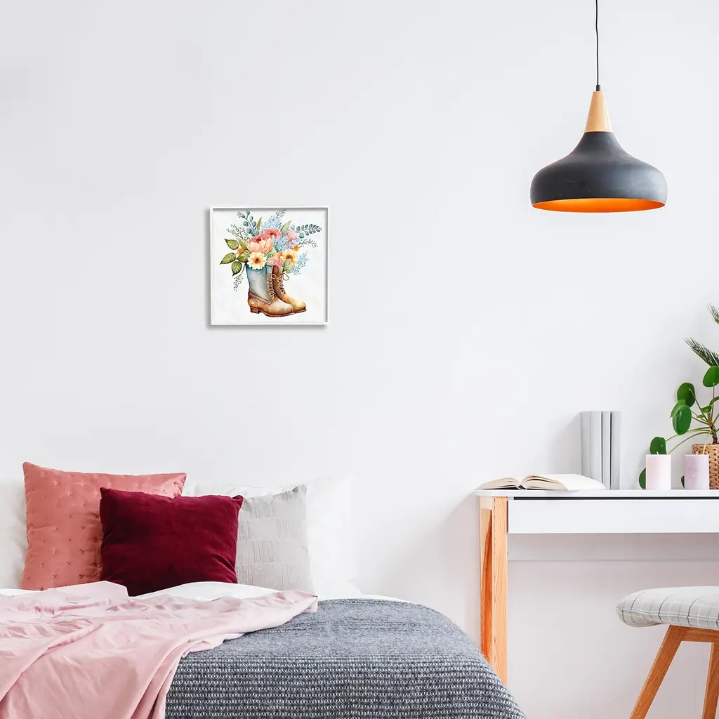 Add dimension to any room with our textured Framed Giclee Artwork. Our framed artwork is securely mounted into a 1.5-inch thick wood grain frame and ready to hang. Frames are available in three alluring styles: black, gray farmhouse and white. In addition, you should check out our oversized options if you want a statement piece. Stupell Wall Art is made in the USA.Features: Dimensions: 12 x 1.5 x 12 FramedFramed Giclee Sizes Include Standard: 12 x 1.5 x 12 Large: 17 x 1.5 x 17 Oversized: 24 x 1.5 x 24Wall Art is Ready to Hang - No Installation or Hardware Needed. For Easy Set Up Lean or Layer Artwork on Shelf or Against Wall.Our giclée prints are carefully mounted on a durable MDF backing, and then perfectly finished in a 1.5 inch thick woodgrain frame. Mounted frame colors include black, gray farmhouse and white. Made In USA.Artwork Relates To: Floral, Flower, Flower Arrangement, Flower Bouquet, Plant, Boot, GardeningDesign by Ziwei Li