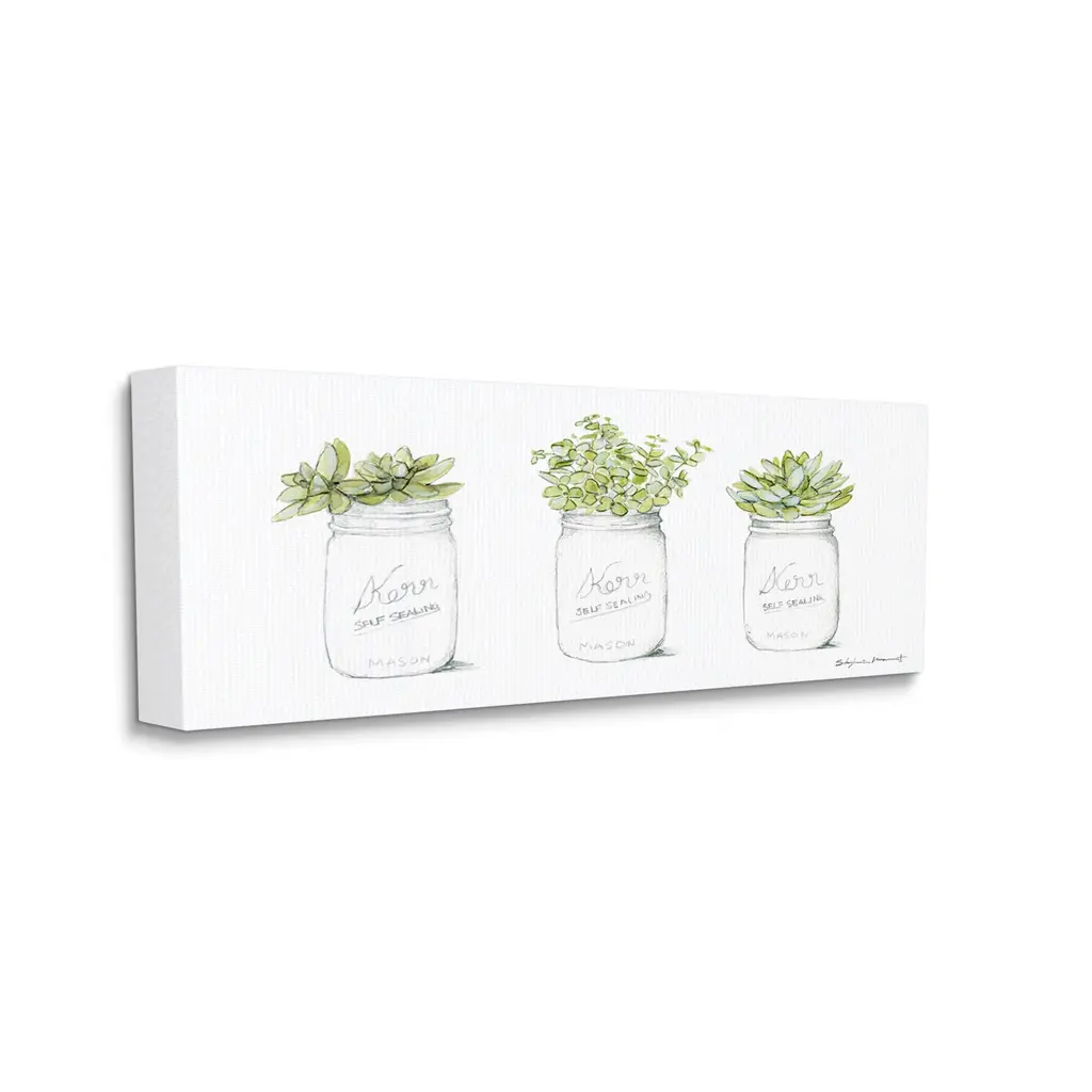 Stupell Country Greenery Succulent Jars Canvas Wall Art By Stephanie Workman Marrott - 24 X 10