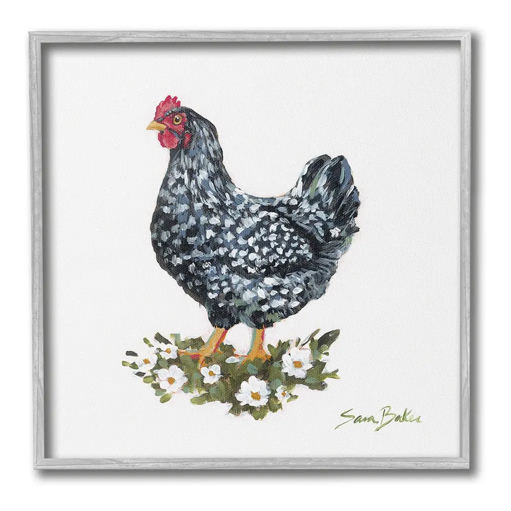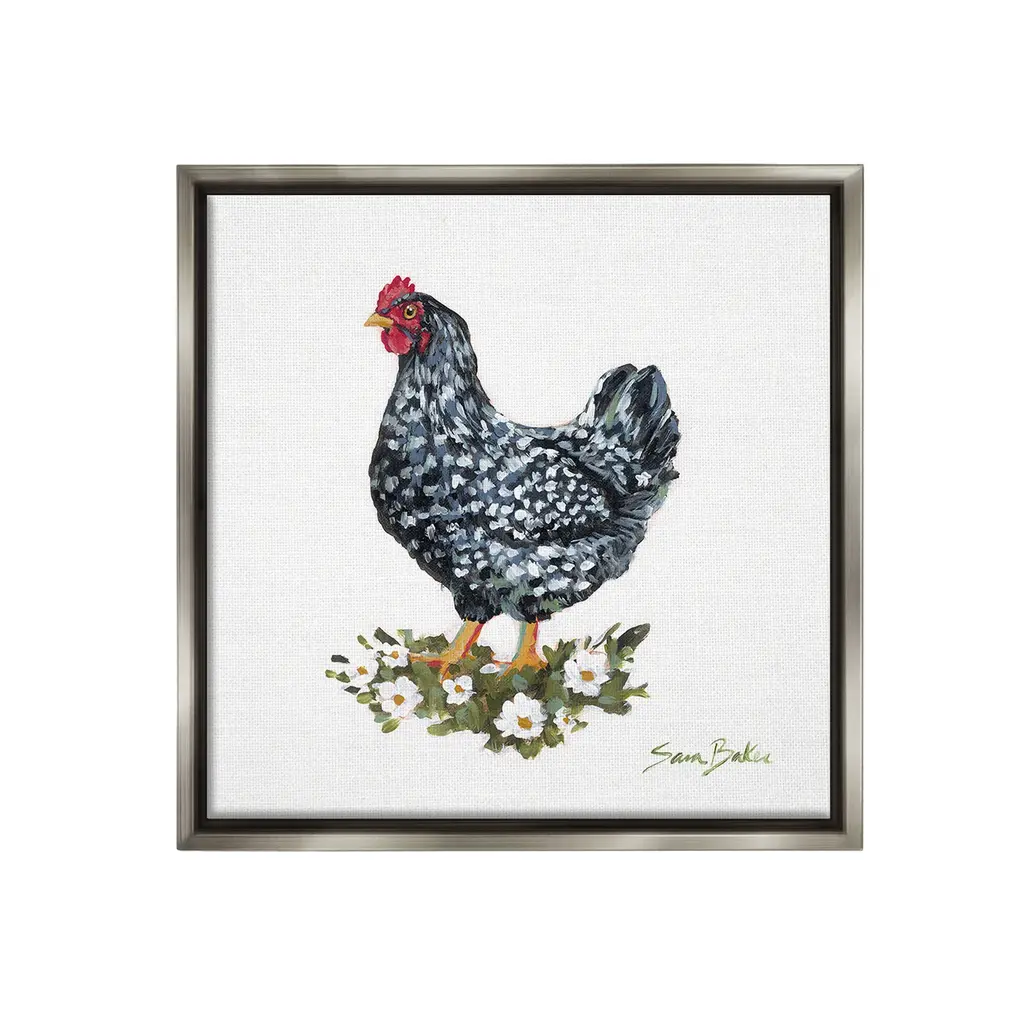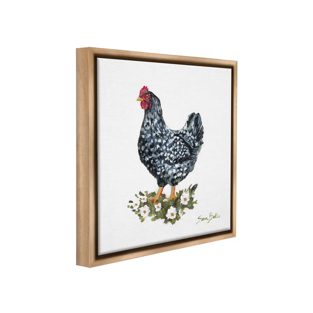 Elevate your home or office to the next level with Stupell Framed Floating Canvas Wall Art. Our premium hand-stretched canvas is mounted securely into a sturdy lightweight frame. The museum-style gap between the wrapped canvas and the box frame gives the illusion of floating artwork. Stupell Wall Art is made in the USA.Features: Dimensions: 18 x 1.7 x 18 Frame, 17 x 1.5 x 17 Canvas ArtFloating Frame Canvas Products are available in sizes 18"x18" and 25"x25". All Floating Frame Canvas Products have a 1.7" Depth.Wall Art is Ready to Hang with Hardware Free Hanging. No Installation required. For Easy Set Up Lean or Layer Artwork on Shelf or Against Wall. Artwork is Permently Fixed into the Frame.Our elevated 1.7" Thick Floating Frame is the perfect complement to our canvas style Wall Art. We use only the highest quality inks in house with industry leading printing solutions. Canvas is hand stretched over a durable wood foundation and then mounted securly into a Modern Box Frame. Made in the USA.Artwork Relates To: Animal, Bird, Chicken, Hen, Flower, Floral, Nature, Farm, CountryDesign by Sara Baker