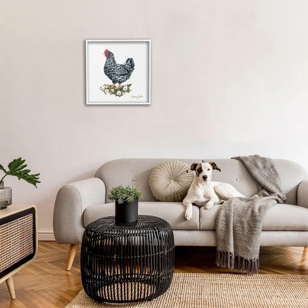 Add dimension to any room with our textured Framed Giclee Artwork. Our framed artwork is securely mounted into a 1.5-inch thick wood grain frame and ready to hang. Frames are available in three alluring styles: black, gray farmhouse and white. In addition, you should check out our oversized options if you want a statement piece. Stupell Wall Art is made in the USA.Features: Dimensions: 12 x 1.5 x 12 FramedFramed Giclee Product Sizes Include 12"x12", 17"x17", and 24"x24". Framed Giclee Products have a 1.5" Depth. Wall Art is Ready to Hang with Hardware Free Hanging. No installation required. For Easy Set Up Lean or Layer Artwork on Shelf or Against Wall.Our giclée prints are carefully mounted on a durable MDF backing, and then perfectly finished in a 1.5 inch thick woodgrain frame. Mounted frame colors include black, gray farmhouse and white. Made In USA.Artwork Relates To: Animal, Bird, Chicken, Hen, Flower, Floral, Nature, Farm, CountryDesign by Sara Baker