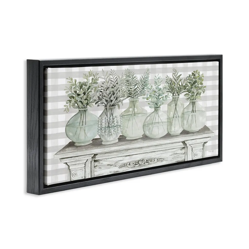 Elevate your home or office to the next level with Stupell Framed Floating Canvas Wall Art. Our premium hand-stretched canvas is mounted securely into a sturdy lightweight frame. The museum-style gap between the wrapped canvas and the box frame gives the illusion of floating artwork. Stupell Wall Art is made in the USA.Features: Dimensions: 25 x 1.7 x 11 Frame, 24 x 1.5 x 10 Canvas ArtFloating Frame Canvas Products are available in sizes 25"x11" and 31"x14". All Floating Frame Canvas Products have a 1.7" Depth.Wall Art is Ready to Hang with Hardware Free Hanging. No Installation required. For Easy Set Up Lean or Layer Artwork on Shelf or Against Wall. Artwork is Permently Fixed into the Frame.Our elevated 1.7" Thick Floating Frame is the perfect complement to our canvas style Wall Art. We use only the highest quality inks in house with industry leading printing solutions. Canvas is hand stretched over a durable wood foundation and then mounted securly into a Modern Box Frame. Made in the USA.Artwork Relates To: Plant, Vase, Jar, Floral, Pattern, Botanical, Plants, Country, Herb, Still Life, Plaid, GinghamDesign by Cindy Jacobs