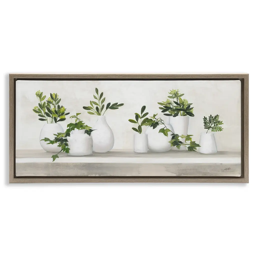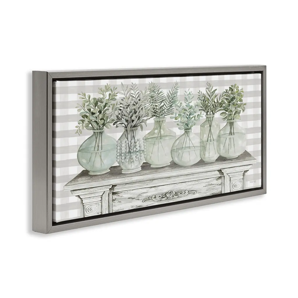 Elevate your home or office to the next level with Stupell Framed Floating Canvas Wall Art. Our premium hand-stretched canvas is mounted securely into a sturdy lightweight frame. The museum-style gap between the wrapped canvas and the box frame gives the illusion of floating artwork. Stupell Wall Art is made in the USA.Features: Dimensions: 25 x 1.7 x 11 Frame, 24 x 1.5 x 10 Canvas ArtFloating Frame Canvas Products are available in sizes 25"x11" and 31"x14". All Floating Frame Canvas Products have a 1.7" Depth.Wall Art is Ready to Hang with Hardware Free Hanging. No Installation required. For Easy Set Up Lean or Layer Artwork on Shelf or Against Wall. Artwork is Permently Fixed into the Frame.Our elevated 1.7" Thick Floating Frame is the perfect complement to our canvas style Wall Art. We use only the highest quality inks in house with industry leading printing solutions. Canvas is hand stretched over a durable wood foundation and then mounted securly into a Modern Box Frame. Made in the USA.Artwork Relates To: Plant, Vase, Jar, Floral, Pattern, Botanical, Plants, Country, Herb, Still Life, Plaid, GinghamDesign by Cindy Jacobs