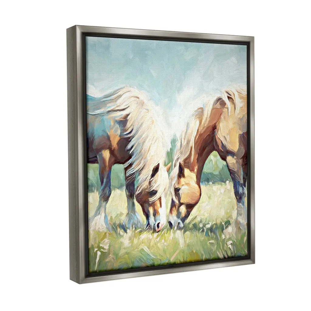 Elevate your home or office to the next level with Stupell Framed Floating Canvas Wall Art. Our premium hand-stretched canvas is mounted securely into a sturdy lightweight frame. The museum-style gap between the wrapped canvas and the box frame gives the illusion of floating artwork. Stupell Wall Art is made in the USA.Features: Dimensions: 17 x 1.7 x 21 Frame, 16 x 1.5 x 20 Canvas ArtFloating Frame Canvas Products are available in sizes 17"x21" and 25"x31". All Floating Frame Canvas Products have a 1.7" Depth.Wall Art is Ready to Hang with Hardware Free Hanging. No Installation required. For Easy Set Up Lean or Layer Artwork on Shelf or Against Wall. Artwork is Permently Fixed into the Frame.Our elevated 1.7" Thick Floating Frame is the perfect complement to our canvas style Wall Art. We use only the highest quality inks in house with industry leading printing solutions. Canvas is hand stretched over a durable wood foundation and then mounted securly into a Modern Box Frame. Made in the USA.Artwork Relates To: Animal, Horse, Mammal, Stallion, Farm, Country, Southwestern, Traditional, LandscapeDesign by Ramona Murdock