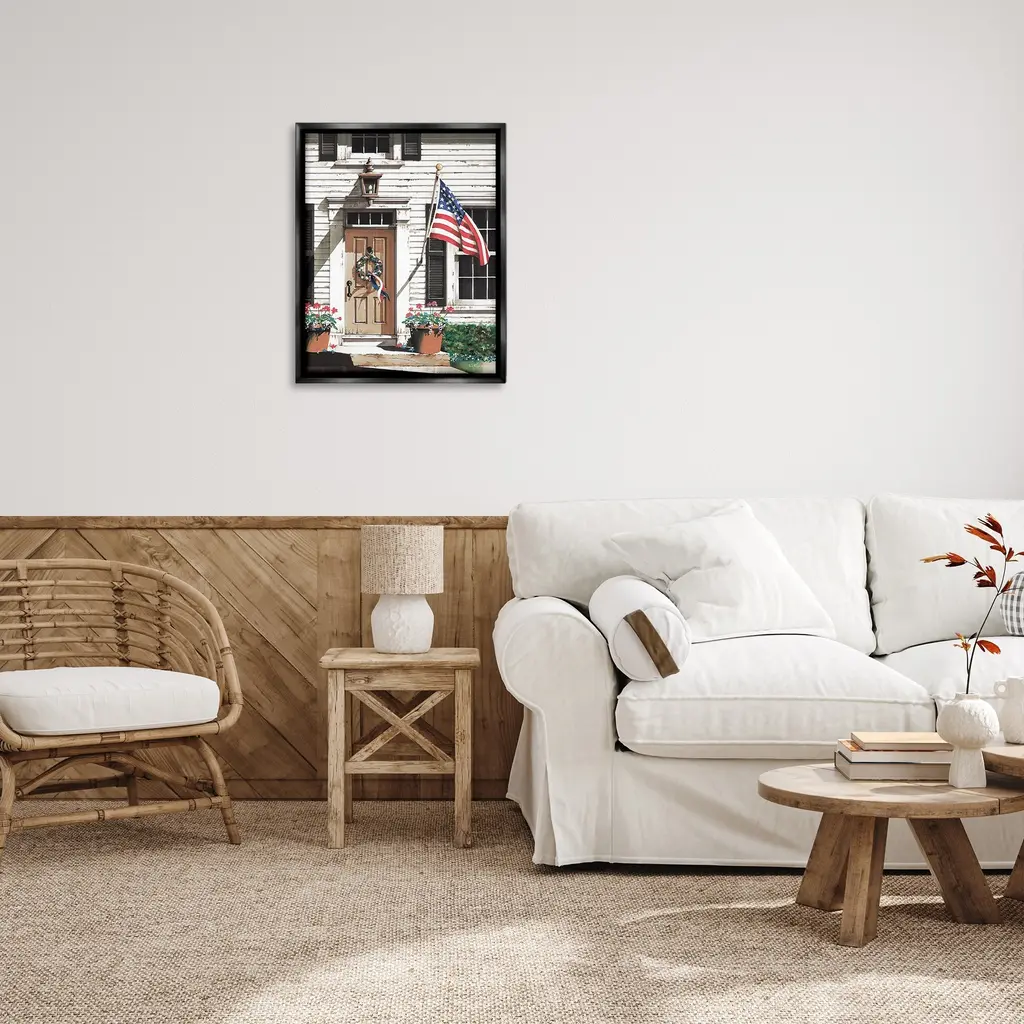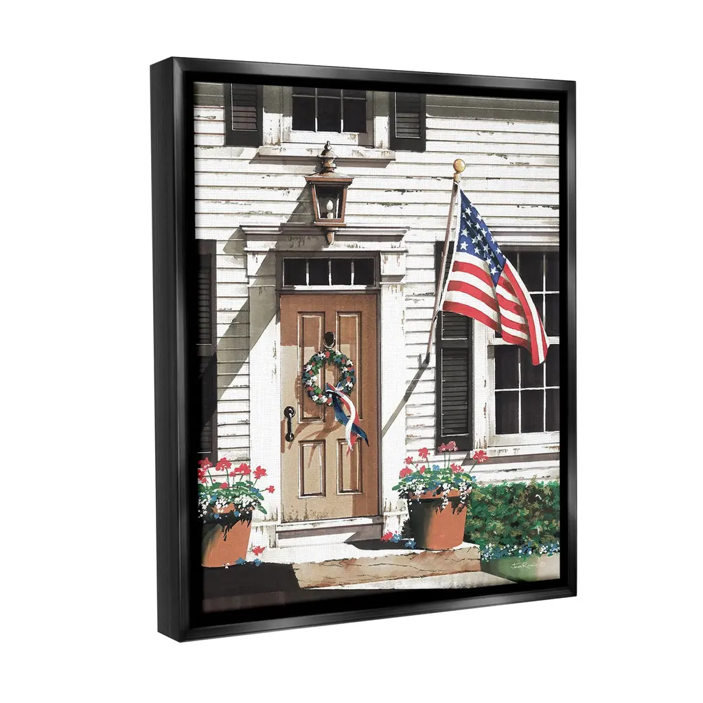 Elevate your home or office to the next level with Stupell Framed Floating Canvas Wall Art. Our premium hand-stretched canvas is mounted securely into a sturdy lightweight frame. The museum-style gap between the wrapped canvas and the box frame gives the illusion of floating artwork. Stupell Wall Art is made in the USA.Features: Dimensions: 17 x 1.7 x 21 Frame, 16 x 1.5 x 20 Canvas ArtFloating Frame Canvas Products are available in sizes 17"x21" and 25"x31". All Floating Frame Canvas Products have a 1.7" Depth.Wall Art is Ready to Hang with Hardware Free Hanging. No Installation required. For Easy Set Up Lean or Layer Artwork on Shelf or Against Wall. Artwork is Permently Fixed into the Frame.Our elevated 1.7" Thick Floating Frame is the perfect complement to our canvas style Wall Art. We use only the highest quality inks in house with industry leading printing solutions. Canvas is hand stretched over a durable wood foundation and then mounted securly into a Modern Box Frame. Made in the USA.Artwork Relates To: Plant, Potted Plant, Planter, Flower, Flag, American Flag, House, Doorway, Wreath, Americana, Country, FarmhouseDesign by John Rossini