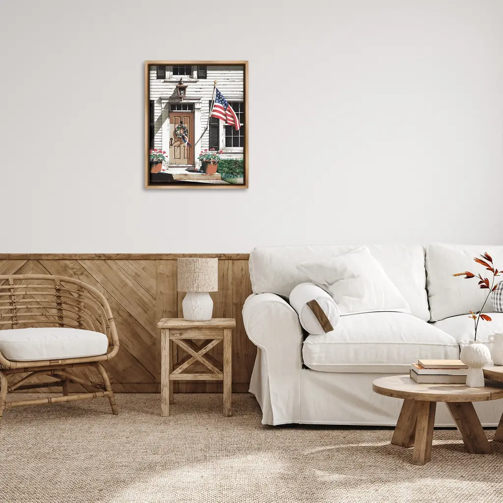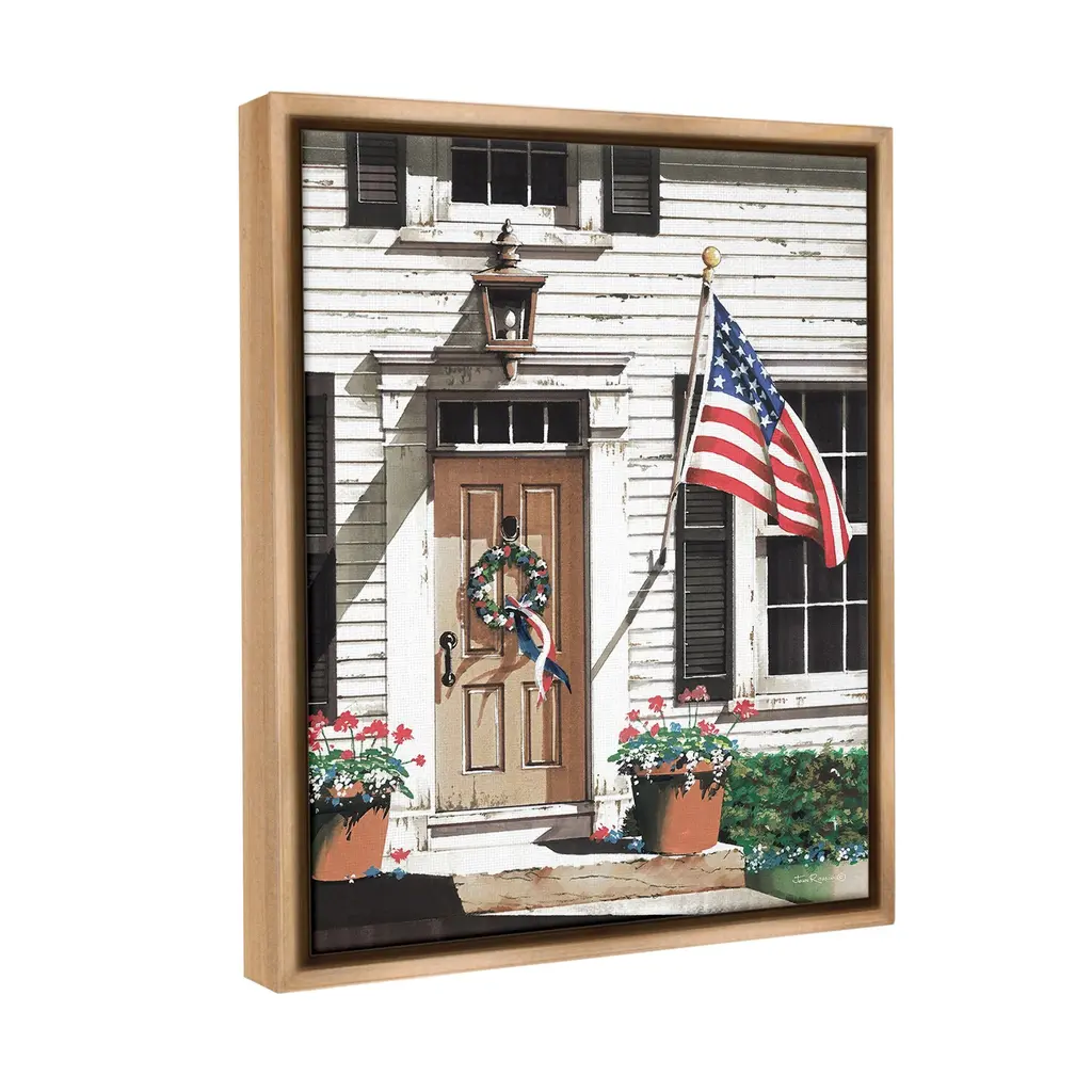 Elevate your home or office to the next level with Stupell Framed Floating Canvas Wall Art. Our premium hand-stretched canvas is mounted securely into a sturdy lightweight frame. The museum-style gap between the wrapped canvas and the box frame gives the illusion of floating artwork. Stupell Wall Art is made in the USA.Features: Dimensions: 17 x 1.7 x 21 Frame, 16 x 1.5 x 20 Canvas ArtFloating Frame Canvas Products are available in sizes 17"x21" and 25"x31". All Floating Frame Canvas Products have a 1.7" Depth.Wall Art is Ready to Hang with Hardware Free Hanging. No Installation required. For Easy Set Up Lean or Layer Artwork on Shelf or Against Wall. Artwork is Permently Fixed into the Frame.Our elevated 1.7" Thick Floating Frame is the perfect complement to our canvas style Wall Art. We use only the highest quality inks in house with industry leading printing solutions. Canvas is hand stretched over a durable wood foundation and then mounted securly into a Modern Box Frame. Made in the USA.Artwork Relates To: Plant, Potted Plant, Planter, Flower, Flag, American Flag, House, Doorway, Wreath, Americana, Country, FarmhouseDesign by John Rossini
