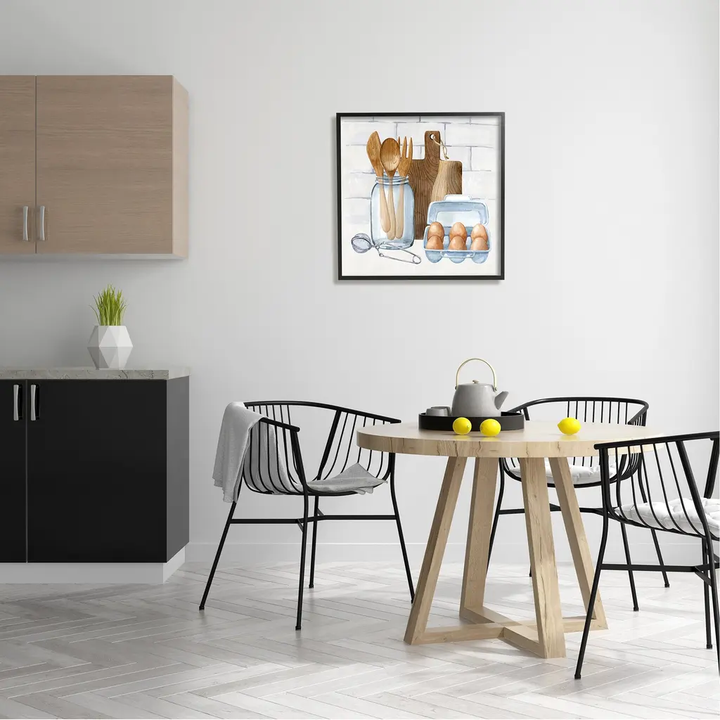 Our Framed Giclee Wall Art adds a touch of class to any space in your home or office. Frames are available in three alluring styles: black, gray farmhouse and white. Our textured artwork will add more depth and dimension to any space. Each piece is mounted with a 1.5 inch thick wood grain frame that is ready to hang! Looking for a statement piece? We have oversized artwork available.Features:Framed Giclee Sizes IncludeStandard: 12 x 1.5 x 12Large: 17 x 1.5 x 17Oversized: 24 x 1.5 x 24Wall Art is Ready to Hang - No Installation or Hardware Needed. For Easy Set Up Lean or Layer Artwork on Shelf or Against Wall.Artwork Relates To: Cutlery, Spoon, Wooden Spoon, Fork, Eggs, Kitchen, Dining, Food, UtensilsOur giclee prints are carefully mounted on a durable MDF backing, and then perfectly finished in a 1.5 inch thick woodgrain frame. Mounted frame colors include black, gray farmhouse and white. Made In USA.Design by ND Art