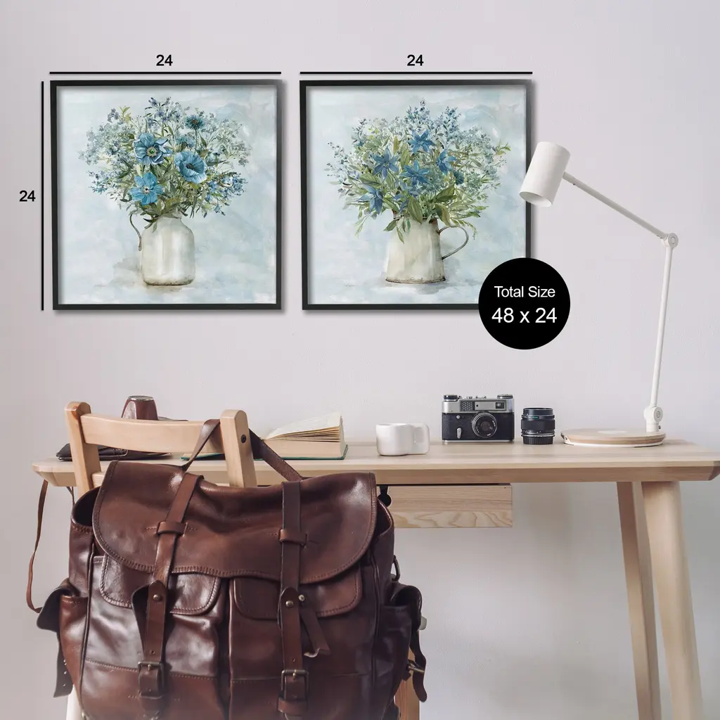 Fill any space in your home or office with our Framed Wall Art Sets. Our textured artwork will add more depth and dimension to any space. Each piece is mounted into a 1.5 inch thick ebony wood grain frame that is ready to hang. Looking for a statement piece? Our boxed framed products are now available in three alluring styles: black, gray farmhouse and white. We have oversized artwork available.Features:Dimensions: 2 Piece Set, Each Panel is 12 x 1.5 x 12 FramedFramed Giclee Set Sizes IncludeStandard: 2pc, Each is 12 x 1.5 x 12Large: 2pc, Each is 17 x 1.5 x 17Oversized: 2pc, Each is 24 x 1.5 x 24Wall Art is Ready to Hang - No Installation or Hardware Needed. For Easy Set Up Lean or Layer Artwork on Shelf or Against Wall.Curated Wall Art Sets make it easy for you complete the theme for any room. Our giclee prints are carefully mounted on a durable MDF backing, and then perfectly finished in a 1.5 inch thick woodgrain frame. Mounted frame colors include black, gray farmhouse and white. Made In USA.Artwork Relates To: Painting; Plant; Potted Plant; Vase; Flower; Flower Arrangement; Floral, Milk Jug, CountryDesign by Carol Robinson