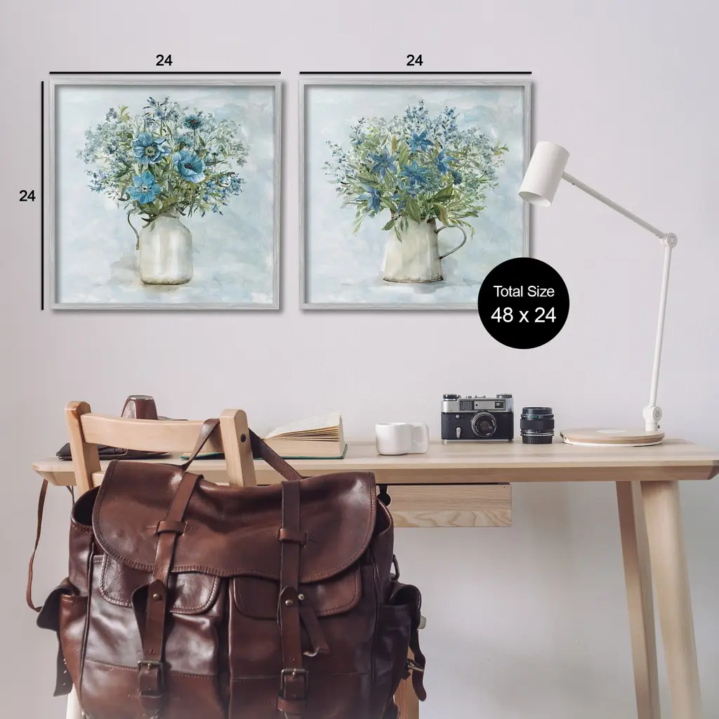 Fill any space in your home or office with our Framed Wall Art Sets. Our textured artwork will add more depth and dimension to any space. Each piece is mounted into a 1.5 inch thick ebony wood grain frame that is ready to hang. Looking for a statement piece? Our boxed framed products are now available in three alluring styles: black, gray farmhouse and white. We have oversized artwork available.Features:Dimensions: 2 Piece Set, Each Panel is 12 x 1.5 x 12 FramedFramed Giclee Set Sizes IncludeStandard: 2pc, Each is 12 x 1.5 x 12Large: 2pc, Each is 17 x 1.5 x 17Oversized: 2pc, Each is 24 x 1.5 x 24Wall Art is Ready to Hang - No Installation or Hardware Needed. For Easy Set Up Lean or Layer Artwork on Shelf or Against Wall.Curated Wall Art Sets make it easy for you complete the theme for any room. Our giclee prints are carefully mounted on a durable MDF backing, and then perfectly finished in a 1.5 inch thick woodgrain frame. Mounted frame colors include black, gray farmhouse and white. Made In USA.Artwork Relates To: Painting; Plant; Potted Plant; Vase; Flower; Flower Arrangement; Floral, Milk Jug, CountryDesign by Carol Robinson