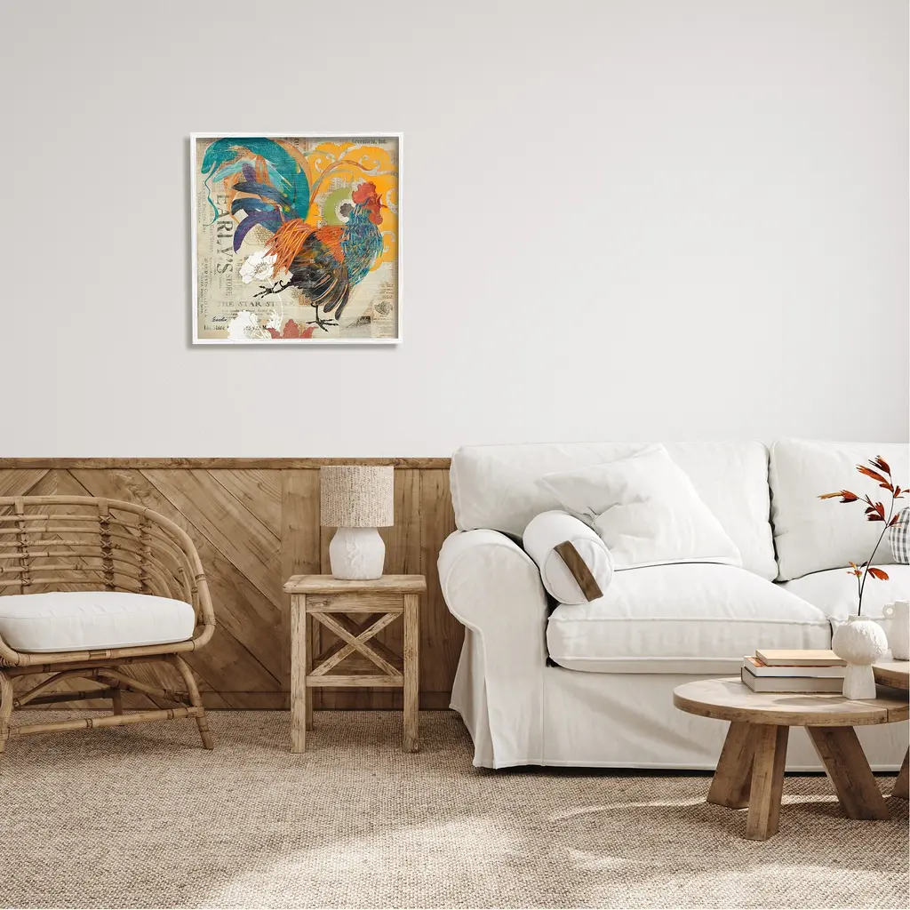 Our Framed Giclee Wall Art adds a touch of class to any space in your home or office. Frames are available in three alluring styles: black, gray farmhouse and white. Our textured artwork will add more depth and dimension to any space. Each piece is mounted with a 1.5 inch thick wood grain frame that is ready to hang! Looking for a statement piece? We have oversized artwork available. Room Type: Living Room, Den, Hallway, Office, Entryway, Study, Dining Room or Bedroom, Guest Room, Studio, Dorm or BoudoirFeatures: Dimensions: 12 x 1.5 x 12 FramedFramed Giclee Sizes Include Standard: 12 x 1.5 x 12 Large: 17 x 1.5 x 17 Oversized: 24 x 1.5 x 24Wall Art is Ready to Hang - No Installation or Hardware Needed. For Easy Set Up Lean or Layer Artwork on Shelf or Against Wall.Our giclée prints are carefully mounted on a durable MDF backing, and then perfectly finished in a 1.5 inch thick woodgrain frame. Mounted frame colors include black, gray farmhouse and white. Made In USA.Artwork Relates To: Animal, Bird, Chicken, Rooster, Vintage, Collage, FloralDesign by Evelia Designs
