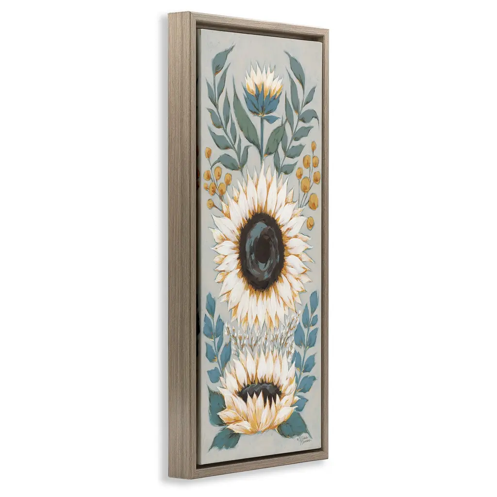 Elevate your home or office to the next level with Stupell Framed Floating Canvas Wall Art. Our premium hand-stretched canvas is mounted securely into a sturdy lightweight frame. The museum-style gap between the wrapped canvas and the box frame gives the illusion of floating artwork. Stupell Wall Art is made in the USA.Features: Dimensions: 11 x 1.7 x 25 Frame, 10 x 1.5 x 24 Canvas ArtFloating Frame Canvas Products are available in sizes 11"x25" and 14"x31". All Floating Frame Canvas Products have a 1.7" Depth.Wall Art is Ready to Hang with Hardware Free Hanging. No Installation required. For Easy Set Up Lean or Layer Artwork on Shelf or Against Wall. Artwork is Permently Fixed into the Frame.Our elevated 1.7" Thick Floating Frame is the perfect complement to our canvas style Wall Art. We use only the highest quality inks in house with industry leading printing solutions. Canvas is hand stretched over a durable wood foundation and then mounted securly into a Modern Box Frame. Made in the USA.Artwork Relates To: Floral, Pattern, Plant, Flower, Blossom, Painting, Sunflower, Botanical, CountryDesign by Michele Norman