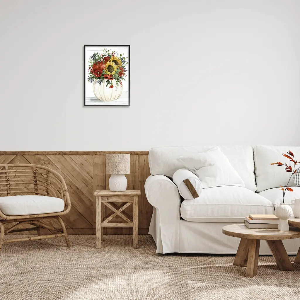 Stupell Country Sunflower Pumpkin Bouquet Framed Giclee Art By Cindy Jacobs - 16 X 20 - Black