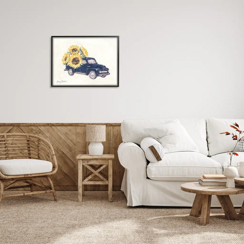 Add dimension to any room with our textured Framed Giclee Artwork. Our framed artwork is securely mounted into a 1.5-inch thick wood grain frame and ready to hang. Frames are available in three alluring styles: black, gray farmhouse and white. In addition, you should check out our oversized options if you want a statement piece. Stupell Wall Art is made in the USA.Features: Dimensions: 14 x 1.5 x 11 FramedFramed Giclee Sizes Include Standard: 14 x 1.5 x 11 Large: 20 x 1.5 x 16 Oversized: 30 x 1.5 x 24Wall Art is Ready to Hang with Hardware Free Hanging. No installation required. For Easy Set Up Lean or Layer Artwork on Shelf or Against Wall.Our giclée prints are carefully mounted on a durable MDF backing, and then perfectly finished in a 1.5 inch thick woodgrain frame. Mounted frame colors include black, gray farmhouse and white. Made In USA.Artwork Relates To: Flower, Plant, Sunflower, Painting, Car, Transportation, Vehicle, Pickup Truck, Truck, Flower ArrangementDesign by Sara Baker