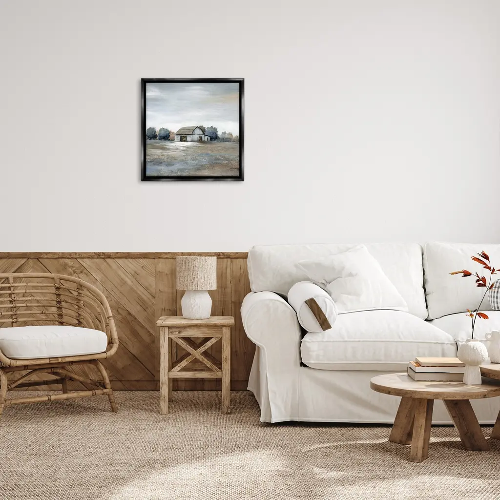 Elevate your home or office to the next level with Stupell Framed Floating Canvas Wall Art. Our premium hand-stretched canvas is mounted securely into a sturdy lightweight frame. The museum-style gap between the wrapped canvas and the box frame gives the illusion of floating artwork. Stupell Wall Art is made in the USA.Features: Dimensions: 18 x 1.7 x 18 Frame, 17 x 1.5 x 17 Canvas ArtFloating Frame Canvas Products are available in sizes 18"x18" and 25"x25". All Floating Frame Canvas Products have a 1.7" Depth.Wall Art is Ready to Hang with Hardware Free Hanging. No Installation required. For Easy Set Up Lean or Layer Artwork on Shelf or Against Wall. Artwork is Permently Fixed into the Frame.Our elevated 1.7" Thick Floating Frame is the perfect complement to our canvas style Wall Art. We use only the highest quality inks in house with industry leading printing solutions. Canvas is hand stretched over a durable wood foundation and then mounted securly into a Modern Box Frame. Made in the USA.Artwork Relates To: Nature, Countryside, Painting, Building, Rural, Hut, Barn, FarmhouseDesign by Nan