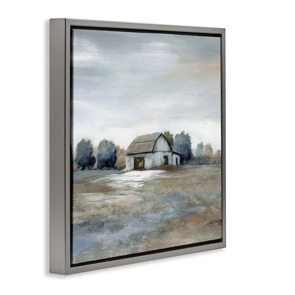Elevate your home or office to the next level with Stupell Framed Floating Canvas Wall Art. Our premium hand-stretched canvas is mounted securely into a sturdy lightweight frame. The museum-style gap between the wrapped canvas and the box frame gives the illusion of floating artwork. Stupell Wall Art is made in the USA.Features: Dimensions: 18 x 1.7 x 18 Frame, 17 x 1.5 x 17 Canvas ArtFloating Frame Canvas Products are available in sizes 18"x18" and 25"x25". All Floating Frame Canvas Products have a 1.7" Depth.Wall Art is Ready to Hang with Hardware Free Hanging. No Installation required. For Easy Set Up Lean or Layer Artwork on Shelf or Against Wall. Artwork is Permently Fixed into the Frame.Our elevated 1.7" Thick Floating Frame is the perfect complement to our canvas style Wall Art. We use only the highest quality inks in house with industry leading printing solutions. Canvas is hand stretched over a durable wood foundation and then mounted securly into a Modern Box Frame. Made in the USA.Artwork Relates To: Nature, Countryside, Painting, Building, Rural, Hut, Barn, FarmhouseDesign by Nan