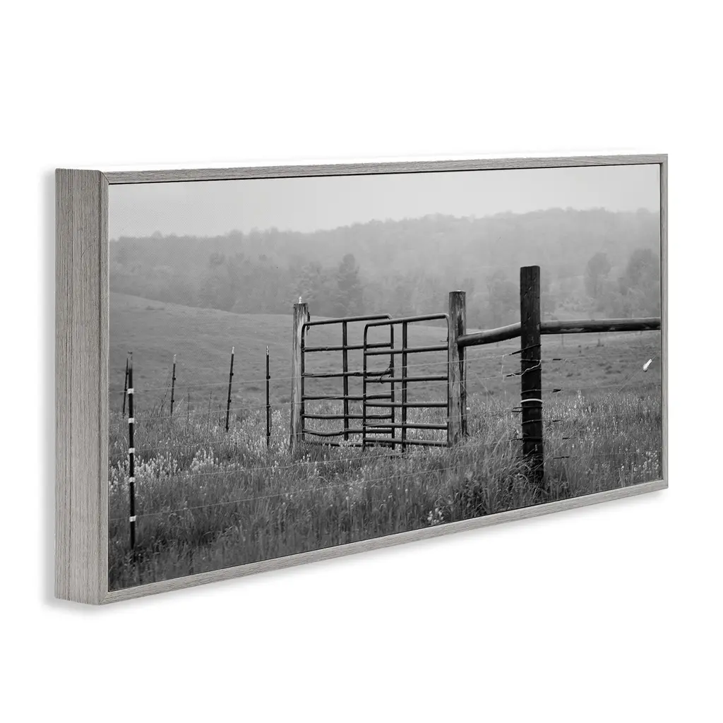 Stupell Countryside Farmland Front Gate Black White Landscape Photography Framed Wall Art - Grey - 24 X 10 - Grey
