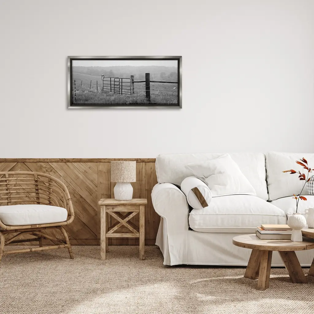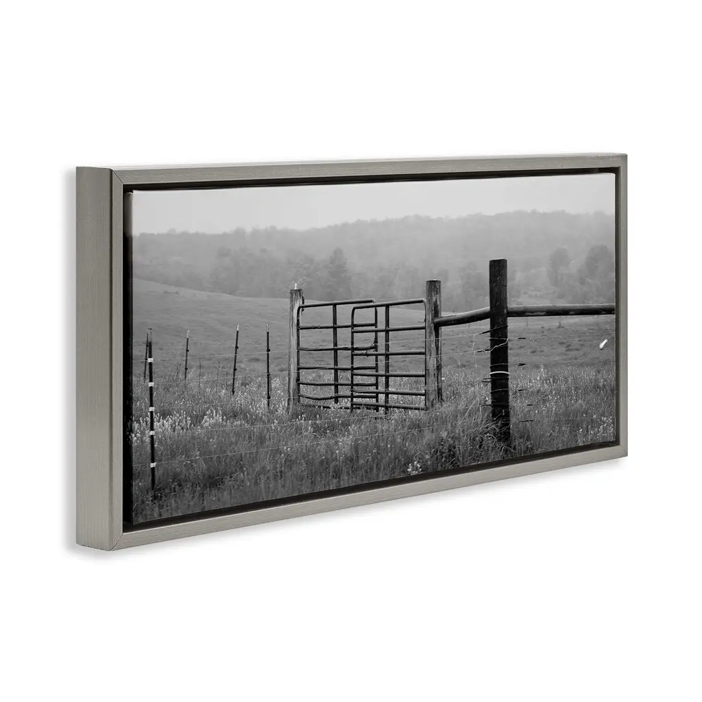 Stupell Countryside Farmland Front Gate Framed Floater Canvas Wall Art Design By Nick Saez - 31 X 14 - Grey