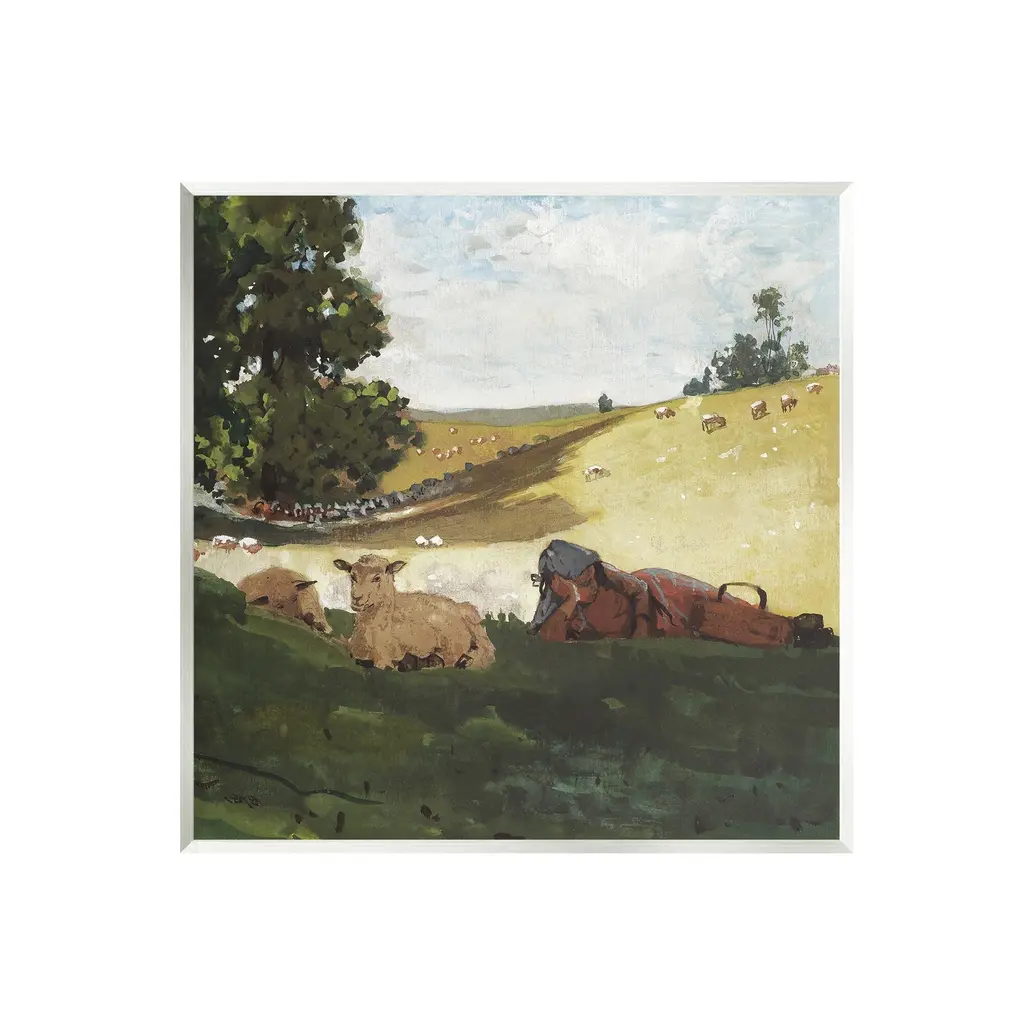 Our wall plaques start as high-quality lithograph prints mounted on durable 0.5-inch thick MDF wood. Each piece is hand finished and comes with a fresh layer of white foil on the sides to give it a crisp, clean look. Plaques arrive ready to hang without installation and come with removable plastic corners to keep them from damage in transit. Stupell Industries Wall Art is made in the USA.Features: Dimensions: 15 x 0.5 x 10 InchesWall Plaque Sizes Include Standard: 15 x 0.5 x 10 Oversized: 19 x 0.5 x 13Wall Art is Ready to Hang with Hardware Free Hanging. No installation required. For Easy Set Up Lean or Layer Artwork on Shelf or Against Wall.All of our wall plaques start off as high quality lithograph prints that are then mounted on durable 0.5 inch thick MDF wood. Each piece is hand finished and comes with a fresh layer of foil on the sides to give it a crisp clean look. Made In USA.Artwork Relates To: Field, Grassland, Nature, Countryside, Farm, Pasture, Rural, Grazing, Animal, Mammal, Sheep, Flock, Ranch, Meadow, LandscapeDesign by Michael Willett