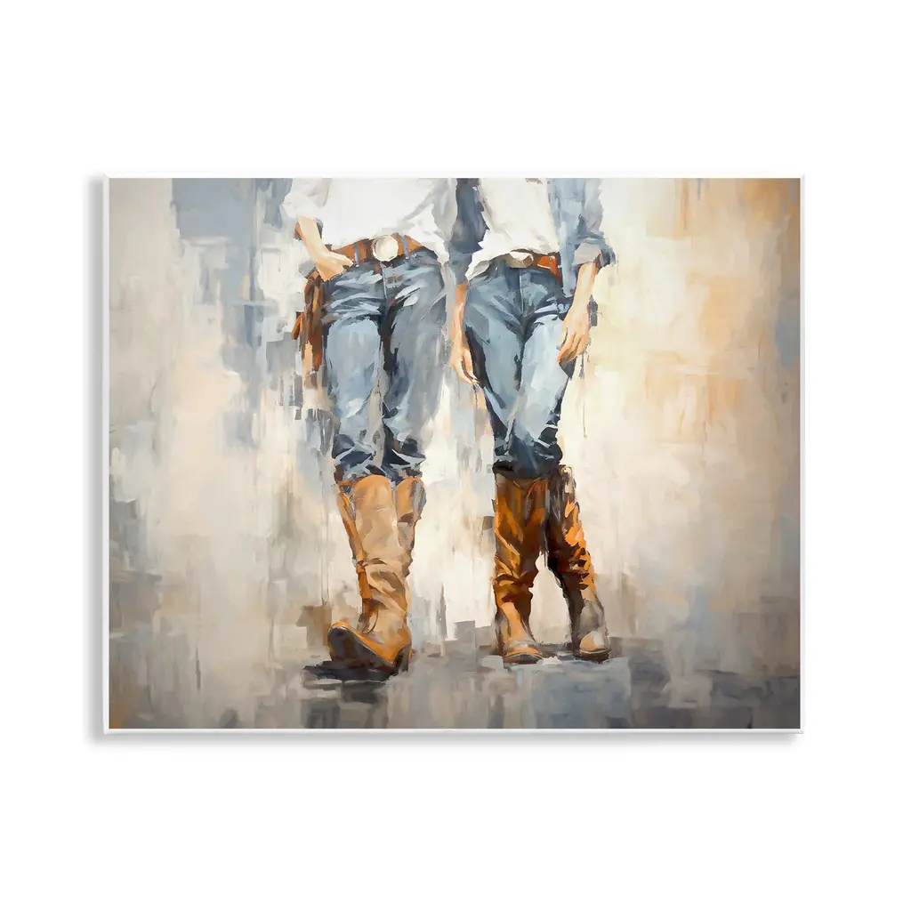 Our wall plaques start as high-quality lithograph prints mounted on durable 0.5-inch thick MDF wood. Each piece is hand finished and comes with a fresh layer of white foil on the sides to give it a crisp, clean look. Plaques arrive ready to hang without installation and come with removable plastic corners to keep them from damage in transit. Wall Art is made in the USA.Features: Dimensions: 10 x 0.5 x 15 InchesWall Plaque Sizes Include Standard: 10 x 0.5 x 15 Oversized: 13 x 0.5 x 19Wall Art is Ready to Hang with Hardware Free Hanging. No installation required. For Easy Set Up Lean or Layer Artwork on Shelf or Against Wall.All of our wall plaques start off as high quality lithograph prints that are then mounted on durable 0.5 inch thick MDF wood. Each piece is hand finished and comes with a fresh layer of foil on the sides to give it a crisp clean look. Made In USA.Artwork Relates To: Cowboy Hat, Boots, Couple, Abstract, Romance, WesternDesign by Jesse Keith