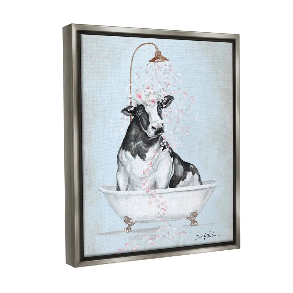 Elevate your home or office to the next level with Stupell Framed Floating Canvas Wall Art. Our premium hand-stretched canvas is mounted securely into a sturdy lightweight frame. The museum-style gap between the wrapped canvas and the box frame gives the illusion of floating artwork. Stupell Wall Art is made in the USA.Features: Dimensions: 17 x 1.7 x 21 Frame, 16 x 1.5 x 20 Canvas ArtFloating Frame Canvas Products are available in sizes 17"x21" and 25"x31". All Floating Frame Canvas Products have a 1.7" Depth.Wall Art is Ready to Hang with Hardware Free Hanging. No Installation required. For Easy Set Up Lean or Layer Artwork on Shelf or Against Wall. Artwork is Permently Fixed into the Frame.Our elevated 1.7" Thick Floating Frame is the perfect complement to our canvas style Wall Art. We use only the highest quality inks in house with industry leading printing solutions. Canvas is hand stretched over a durable wood foundation and then mounted securly into a Modern Box Frame. Made in the USA.Artwork Relates To: Bathroom, Animal, Mammal, Bathtub, Tub, Flower, Cattle, Cow, RusticDesign by Deb Coules
