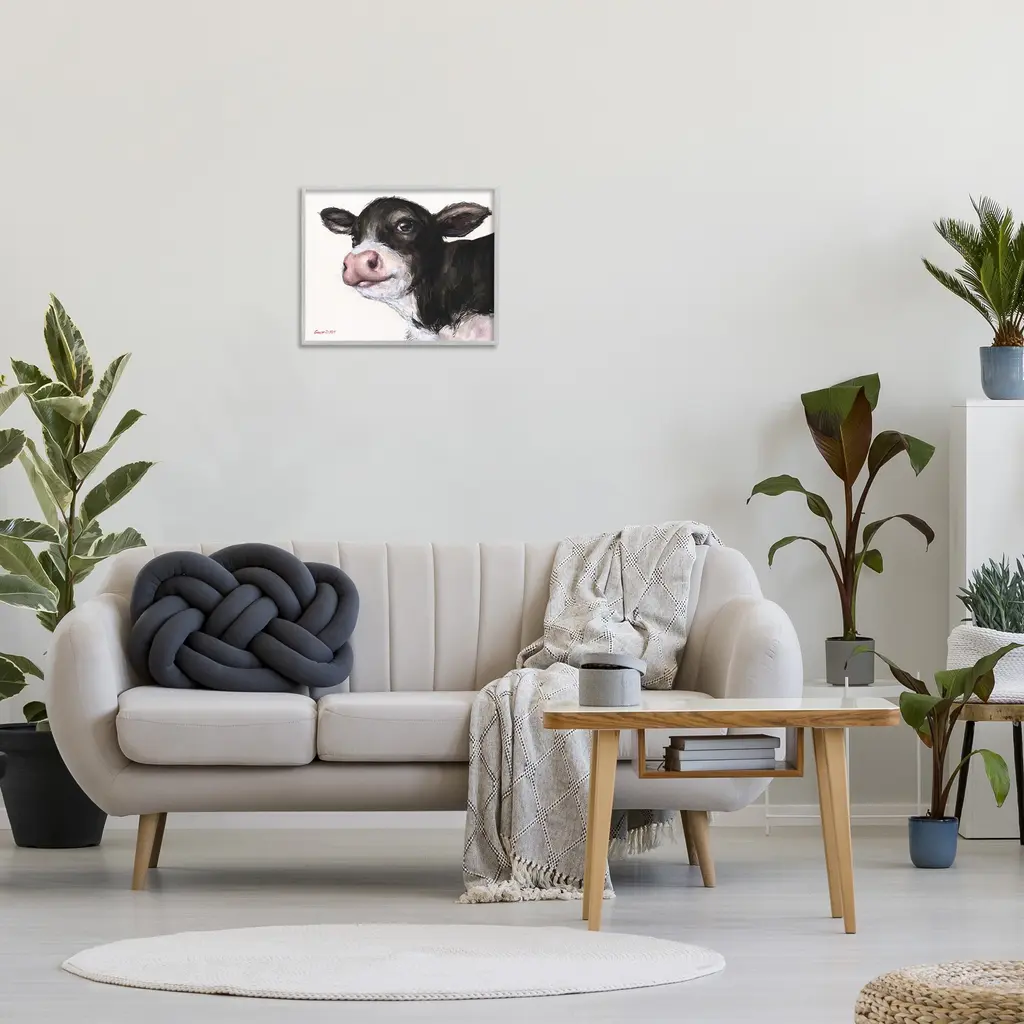 Add dimension to any room with our textured Framed Giclee Artwork. Our framed artwork is securely mounted into a 1.5-inch thick wood grain frame and ready to hang. Frames are available in three alluring styles: black, gray farmhouse and white. In addition, you should check out our oversized options if you want a statement piece. Stupell Wall Art is made in the USA.Features: Dimensions: 14 x 1.5 x 11 FramedFramed Giclee Products are available in the sizes 14"x11", 20"x16" or 30"x24". All Framed Giclee Products have a 1.5" Depth. Wall Art is Ready to Hang with Hardware Free Hanging. No installation required. For Easy Set Up Lean or Layer Artwork on Shelf or Against Wall.Our giclée prints are carefully mounted on a durable MDF backing, and then perfectly finished in a 1.5 inch thick woodgrain frame. Mounted frame colors include black, gray farmhouse and white. Made In USA.Artwork Relates To: Animal, Cattle, Cow, Mammal, Calf, Minimal, Farm, Country, PaintingDesign by GeorgeDyachenkoArt