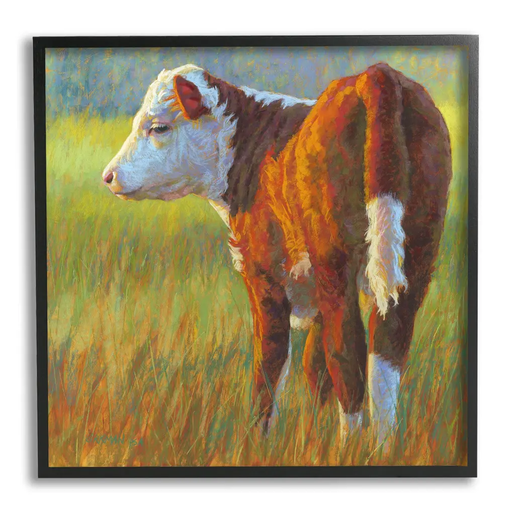 Our Framed Giclee Wall Art adds a touch of class to any space in your home or office. Frames are available in three alluring styles: black, gray farmhouse and white. Our textured artwork will add more depth and dimension to any space. Each piece is mounted with a 1.5 inch thick wood grain frame that is ready to hang! Looking for a statement piece? We have oversized artwork available.Features: Dimensions: 12 x 1.5 x 12 FramedFramed Giclee Sizes Include Standard: 12 x 1.5 x 12 Large: 17 x 1.5 x 17 Oversized: 24 x 1.5 x 24Wall Art is Ready to Hang - No Installation or Hardware Needed. For Easy Set Up Lean or Layer Artwork on Shelf or Against Wall.Our giclée prints are carefully mounted on a durable MDF backing, and then perfectly finished in a 1.5 inch thick woodgrain frame. Mounted frame colors include black, gray farmhouse and white. Made In USA.Artwork Relates To: Cattle, Mammal, Animal, Painting, Farm Animal, CowDesign by Rita Kirkman