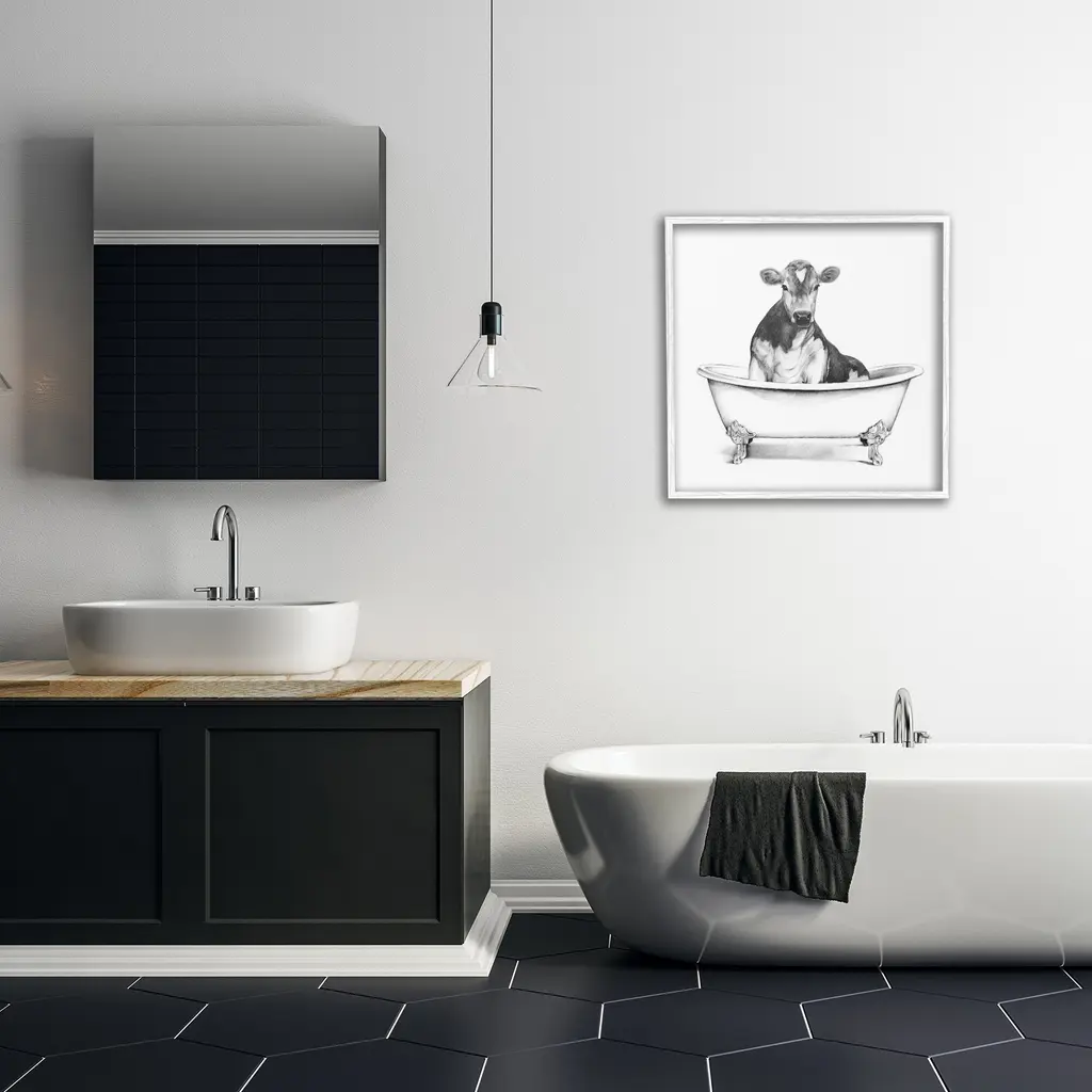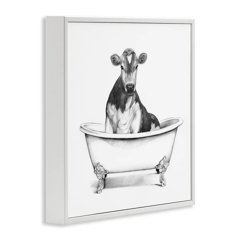 Stupell Cow In Claw Tub Minimal Farm Animal Sketch Framed Wall Art,12x12 - White - 24 X 24 - Wood - White