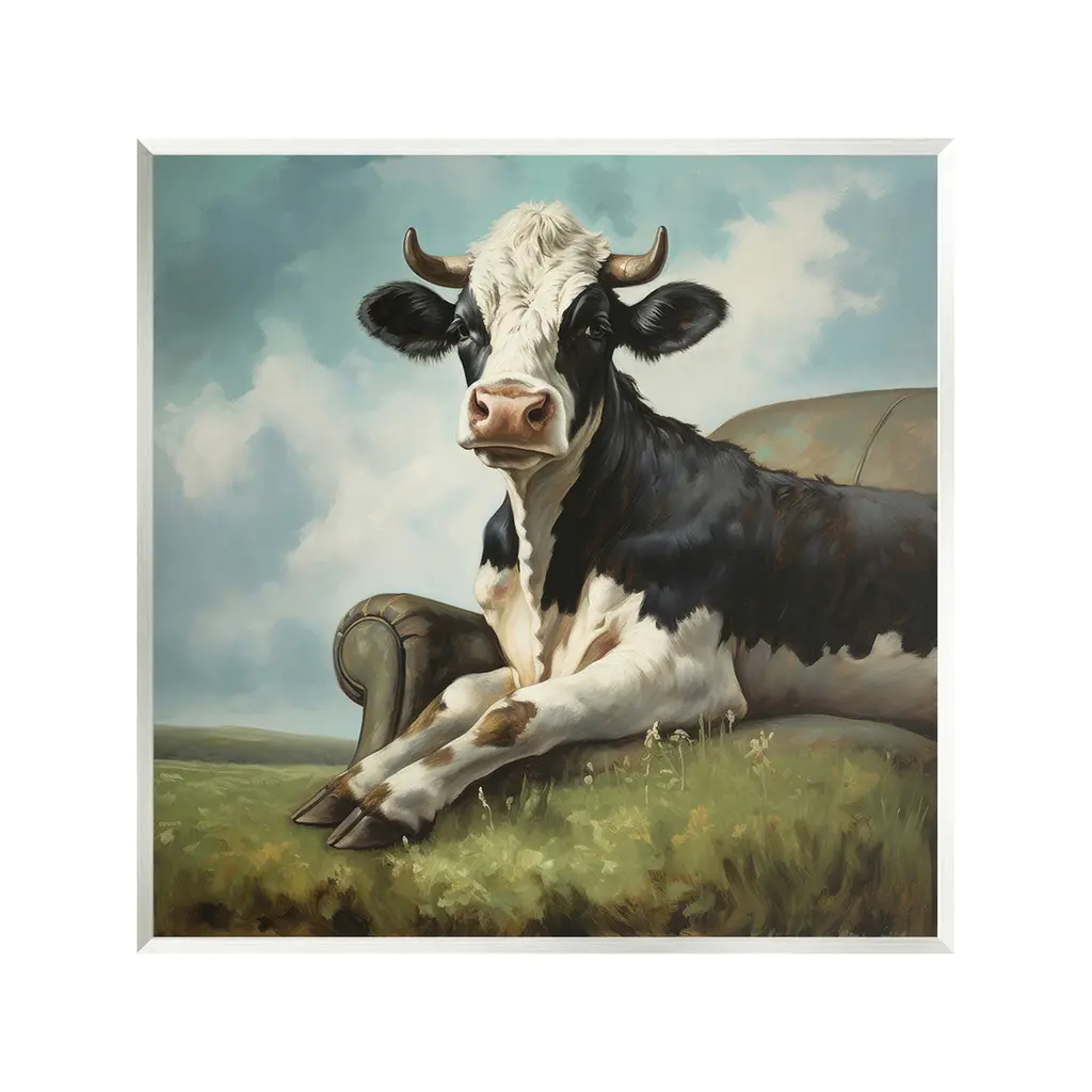 Add dimension to any room with our textured Framed Giclee Artwork. Our framed artwork is securely mounted into a 1.5-inch thick wood grain frame and ready to hang. Frames are available in three alluring styles: black, gray farmhouse and white. In addition, you should check out our oversized options if you want a statement piece. Stupell Wall Art is made in the USA.Features: Dimensions: 12 x 1.5 x 12 FramedFramed Giclee Product Sizes Include 12"x12", 17"x17", and 24"x24". Framed Giclee Products have a 1.5" Depth. Wall Art is Ready to Hang with Hardware Free Hanging. No installation required. For Easy Set Up Lean or Layer Artwork on Shelf or Against Wall.Our giclée prints are carefully mounted on a durable MDF backing, and then perfectly finished in a 1.5 inch thick woodgrain frame. Mounted frame colors include black, gray farmhouse and white. Made In USA.Artwork Relates To: Animal, Cattle, Cow, Mammal, Farm, Country, Couch, LandscapeDesign by Lazar Studio