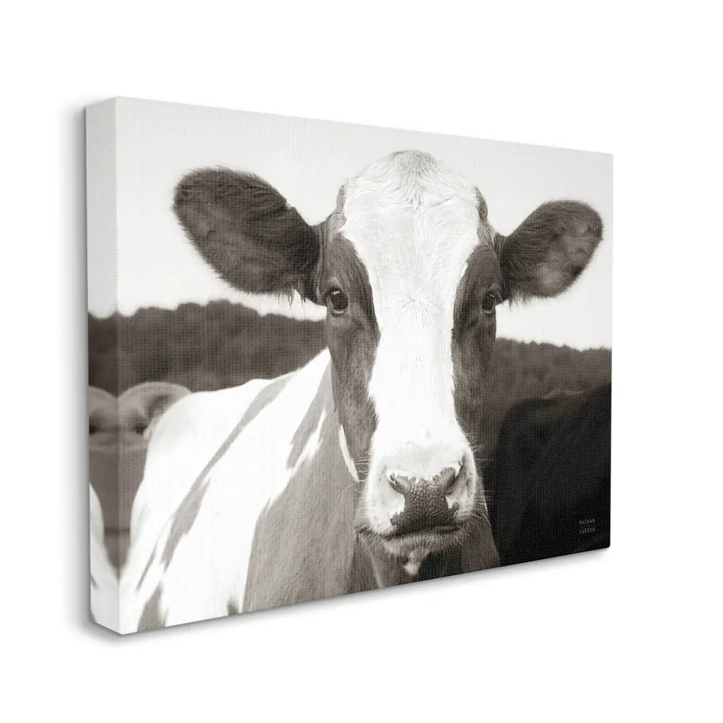 We create our stretched canvas to the highest standards. Using only the highest quality inks and canvas on Mimaki printers, we hand-cut and stretch each piece over a 1.5-inch thick wooden frame for hanging. As a result, the art comes ready to hang on the sturdy ledge with no installation required. Stupell Wall Art is made in the USA.Features: Dimensions: 20 x 1.5 x 16 InchesStretched Canvas Sizes Include Standard: 20 x 1.5 x 16 Large: 30 x 1.5 x 20 X-Large: 40 x 1.5 x 30 Oversized: 48 x 1.5 x 36Wall Art is Ready to Hang with Hardware Free Hanging. No installation required. For Easy Set Up Lean or Layer Artwork on Shelf or Against Wall.Our stretched canvas is created with the highest standards. We use only the highest quality inks and canvas on our in house Mimaki printers, and then hand cut and stretch each piece over a 1.5 inch thick wooden frame for hanging. Made In USA.Artwork Relates To: Animal, Cattle, Cow, Mammal, Landscape, FarmDesign by Nathan Larson