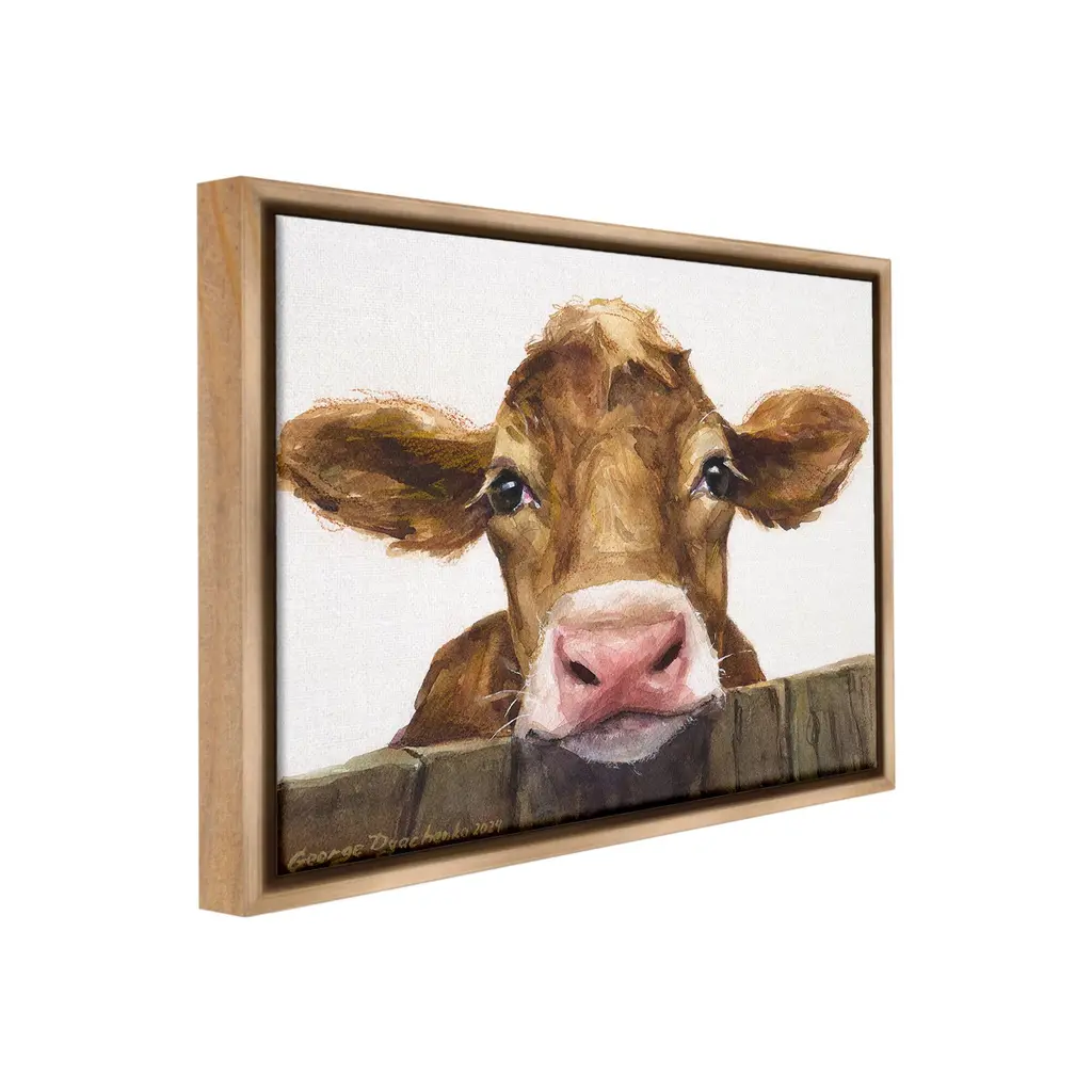 Elevate your home or office to the next level with Stupell Framed Floating Canvas Wall Art. Our premium hand-stretched canvas is mounted securely into a sturdy lightweight frame. The museum-style gap between the wrapped canvas and the box frame gives the illusion of floating artwork. Stupell Wall Art is made in the USA.Features: Dimensions: 21 x 1.7 x 17 Frame, 20 x 1.5 x 16 Canvas ArtFloating Frame Canvas Products are available in sizes 21"x17" and 31"x25". All Floating Frame Canvas Products have a 1.7" Depth.Wall Art is Ready to Hang with Hardware Free Hanging. No Installation required. For Easy Set Up Lean or Layer Artwork on Shelf or Against Wall. Artwork is Permently Fixed into the Frame.Our elevated 1.7" Thick Floating Frame is the perfect complement to our canvas style Wall Art. We use only the highest quality inks in house with industry leading printing solutions. Canvas is hand stretched over a durable wood foundation and then mounted securly into a Modern Box Frame. Made in the USA.Artwork Relates To: Animal, Cattle, Cow, Mammal, Calf, Farm, Fence, CountryDesign by GeorgeDyachenkoArt