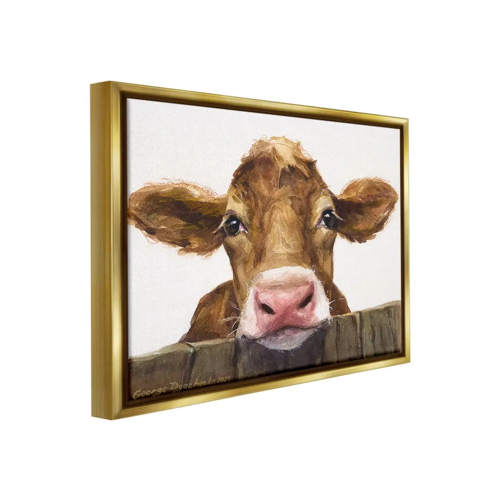 Elevate your home or office to the next level with Stupell Framed Floating Canvas Wall Art. Our premium hand-stretched canvas is mounted securely into a sturdy lightweight frame. The museum-style gap between the wrapped canvas and the box frame gives the illusion of floating artwork. Stupell Wall Art is made in the USA.Features: Dimensions: 21 x 1.7 x 17 Frame, 20 x 1.5 x 16 Canvas ArtFloating Frame Canvas Products are available in sizes 21"x17" and 31"x25". All Floating Frame Canvas Products have a 1.7" Depth.Wall Art is Ready to Hang with Hardware Free Hanging. No Installation required. For Easy Set Up Lean or Layer Artwork on Shelf or Against Wall. Artwork is Permently Fixed into the Frame.Our elevated 1.7" Thick Floating Frame is the perfect complement to our canvas style Wall Art. We use only the highest quality inks in house with industry leading printing solutions. Canvas is hand stretched over a durable wood foundation and then mounted securly into a Modern Box Frame. Made in the USA.Artwork Relates To: Animal, Cattle, Cow, Mammal, Calf, Farm, Fence, CountryDesign by GeorgeDyachenkoArt