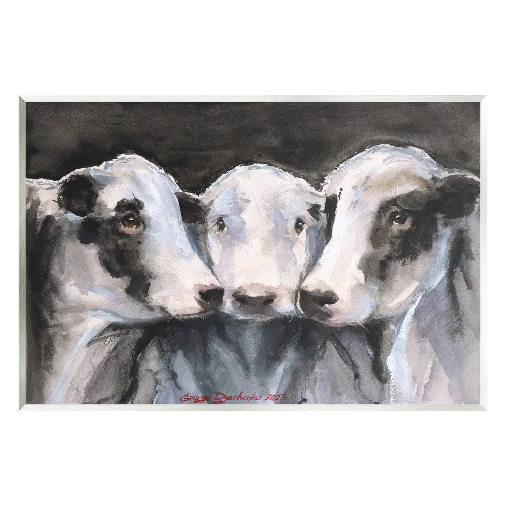 Stupell Cow Trio Painting Framed Floater Canvas Wall Art Design By Georgedyachenkoart - 21 X 17 - Gold