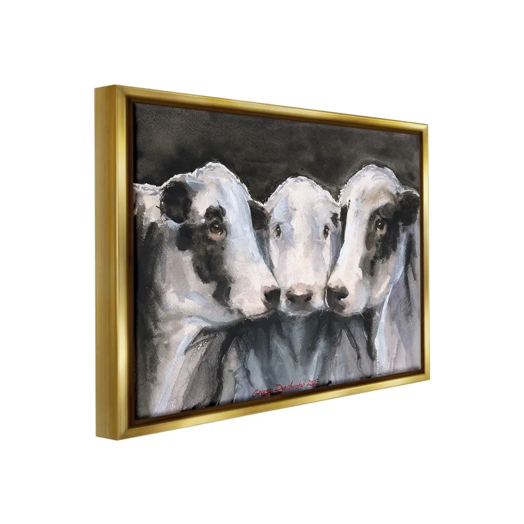 Stupell Cow Trio Painting Framed Floater Canvas Wall Art Design By Georgedyachenkoart - 31 X 25 - Gold