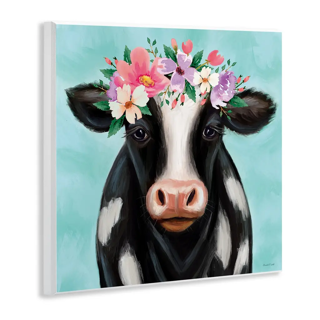 Stupell Cow With Pastel Flowers Wall Plaque Art Design By Elizabeth Tyndall - 12 X 12