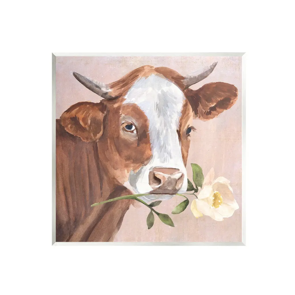 We create our stretched canvas to the highest standards. Using only the highest quality inks and canvas on Mimaki printers, we hand-cut and stretch each piece over a 1.5-inch thick wooden frame for hanging. As a result, the art comes ready to hang on the sturdy ledge with no installation required. Stupell Wall Art is made in the USA.Features: Dimensions: 17 x 1.5 x 17 InchesStretched Canvas Sizes Include Standard: 17 x 1.5 x 17 Large: 24 x 1.5 x 24 X-Large: 30 x 1.5 x 30 Oversized: 36 x 1.5 x 36Wall Art is Ready to Hang with Hardware Free Hanging. No installation required. For Easy Set Up Lean or Layer Artwork on Shelf or Against Wall.Our stretched canvas is created with the highest standards. We use only the highest quality inks and canvas on our in house Mimaki printers, and then hand cut and stretch each piece over a 1.5 inch thick wooden frame for hanging. Made In USA.Artwork Relates To: Animal, Cattle, Mammal, Flower, Plant, Sunflower, Painting, Cow, CalfDesign by Silvia Vassileva