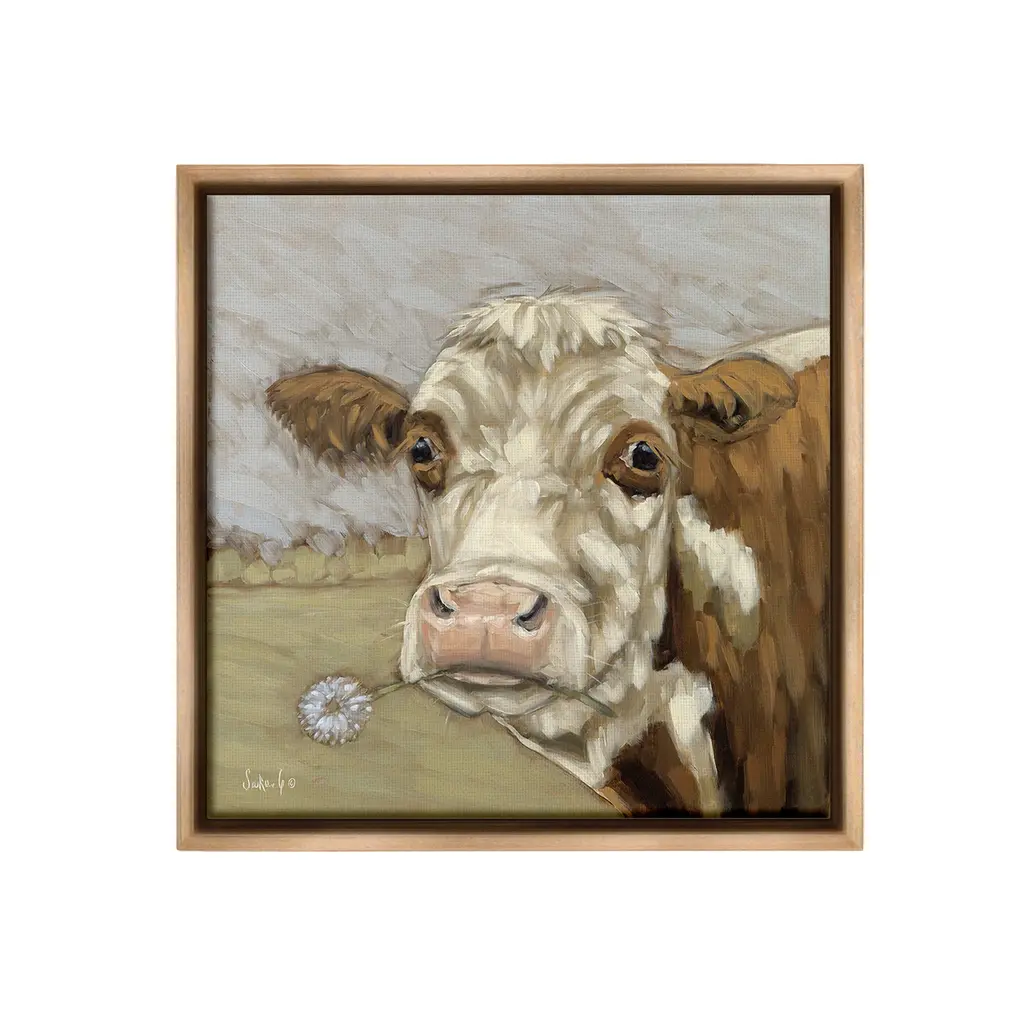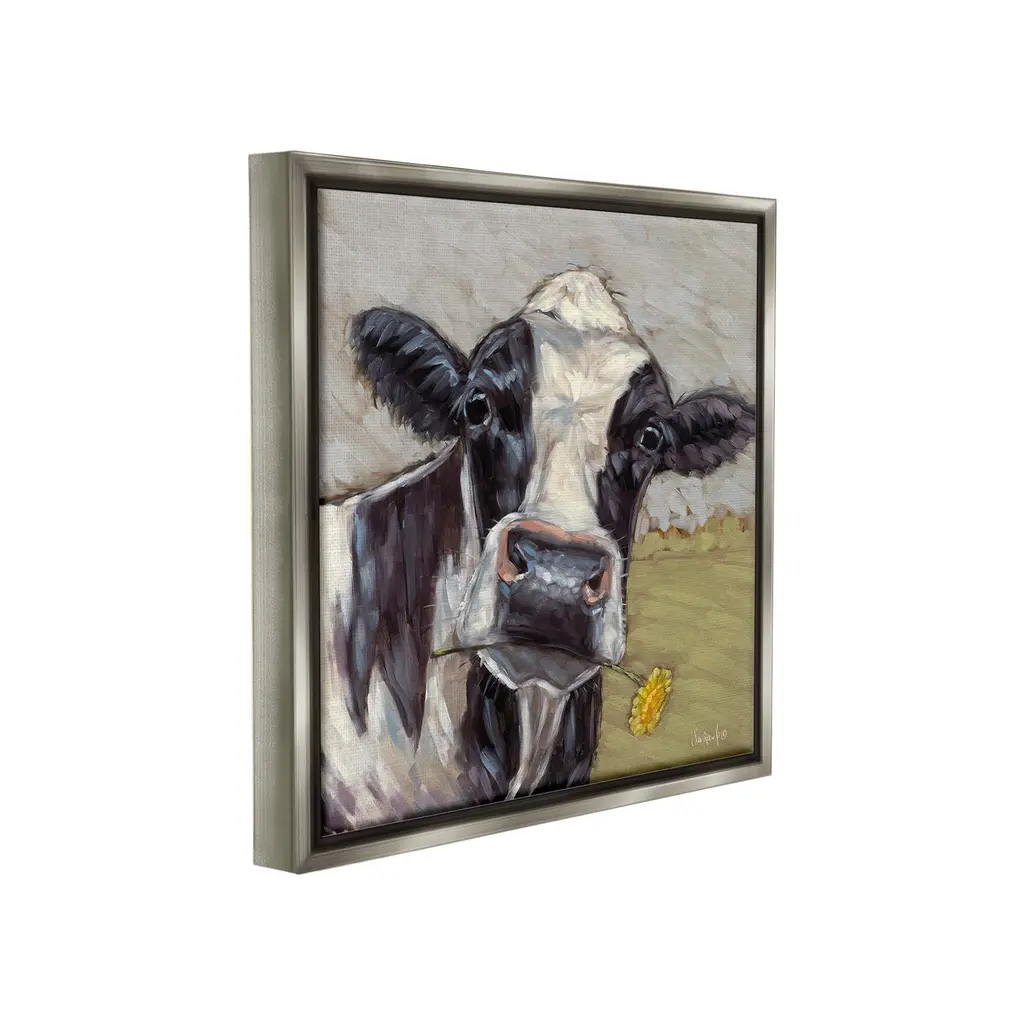 Elevate your home or office to the next level with Stupell Framed Floating Canvas Wall Art. Our premium hand-stretched canvas is mounted securely into a sturdy lightweight frame. The museum-style gap between the wrapped canvas and the box frame gives the illusion of floating artwork. Stupell Wall Art is made in the USA.Features: Dimensions: 18 x 1.7 x 18 Frame, 17 x 1.5 x 17 Canvas ArtFloating Frame Canvas Products are available in sizes 18"x18" and 25"x25". All Floating Frame Canvas Products have a 1.7" Depth.Wall Art is Ready to Hang with Hardware Free Hanging. No Installation required. For Easy Set Up Lean or Layer Artwork on Shelf or Against Wall. Artwork is Permently Fixed into the Frame.Our elevated 1.7" Thick Floating Frame is the perfect complement to our canvas style Wall Art. We use only the highest quality inks in house with industry leading printing solutions. Canvas is hand stretched over a durable wood foundation and then mounted securly into a Modern Box Frame. Made in the USA.Artwork Relates To: Painting, Animal, Mammal, Abstract, Modern, Farm, Country, Cow, Cattle, Flower, DaisyDesign by Sara G. Designs