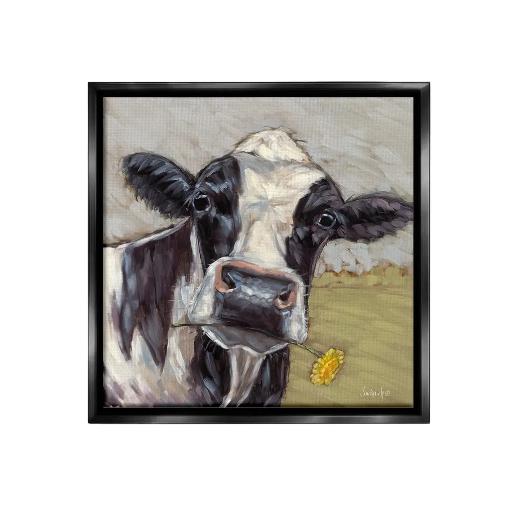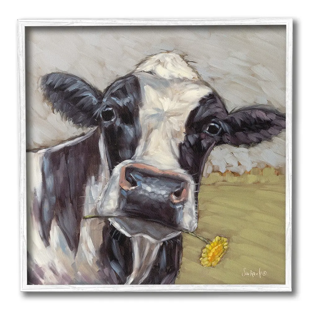 Add dimension to any room with our textured Framed Giclee Artwork. Our framed artwork is securely mounted into a 1.5-inch thick wood grain frame and ready to hang. Frames are available in three alluring styles: black, gray farmhouse and white. In addition, you should check out our oversized options if you want a statement piece. Stupell Wall Art is made in the USA.Features: Dimensions: 12 x 1.5 x 12 FramedFramed Giclee Product Sizes Include 12"x12", 17"x17", and 24"x24". Framed Giclee Products have a 1.5" Depth. Wall Art is Ready to Hang with Hardware Free Hanging. No installation required. For Easy Set Up Lean or Layer Artwork on Shelf or Against Wall.Our giclée prints are carefully mounted on a durable MDF backing, and then perfectly finished in a 1.5 inch thick woodgrain frame. Mounted frame colors include black, gray farmhouse and white. Made In USA.Artwork Relates To: Painting, Animal, Mammal, Abstract, Modern, Farm, Country, Cow, Cattle, Flower, DaisyDesign by Sara G. Designs