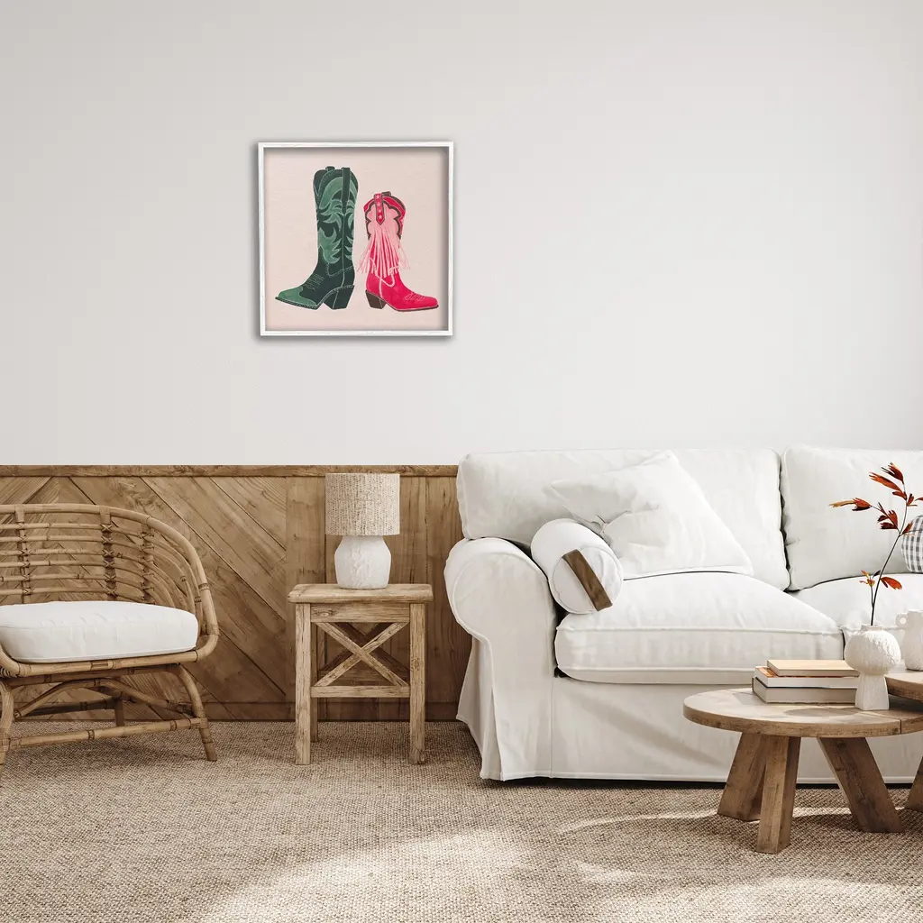Stupell Cowboy & Cowgirl Boots Framed Giclee Art Design By Grace Popp - 24 X 24 - White