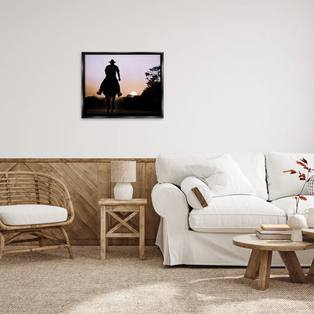 Stupell Cowboy & Setting Sun Framed Floater Canvas Wall Art Design By Marcus Prime - 31 X 25 - Black