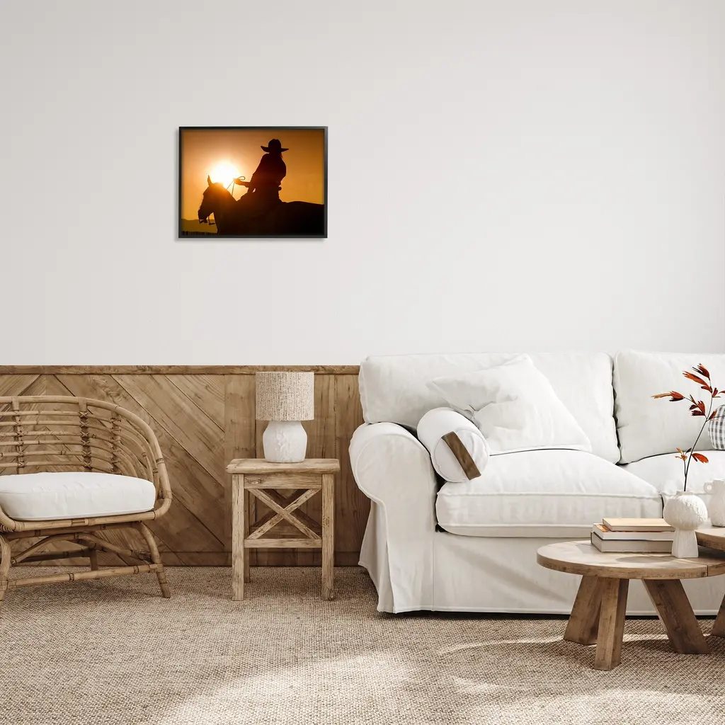 Add dimension to any room with our textured Framed Giclee Artwork. Our framed artwork is securely mounted into a 1.5-inch thick wood grain frame and ready to hang. Frames are available in three alluring styles: black, gray farmhouse and white. In addition, you should check out our oversized options if you want a statement piece. Stupell Wall Art is made in the USA.Features: Dimensions: 14 x 1.5 x 11 FramedFramed Giclee Sizes Include Standard: 14 x 1.5 x 11 Large: 20 x 1.5 x 16 Oversized: 30 x 1.5 x 24Wall Art is Ready to Hang with Hardware Free Hanging. No installation required. For Easy Set Up Lean or Layer Artwork on Shelf or Against Wall.Our giclée prints are carefully mounted on a durable MDF backing, and then perfectly finished in a 1.5 inch thick woodgrain frame. Mounted frame colors include black, gray farmhouse and white. Made In USA.Artwork Relates To: Person, Animal, Horse, Mammal, Equestrian, Stallion, Cowboy, PhotographyDesign by Lisa Dearing