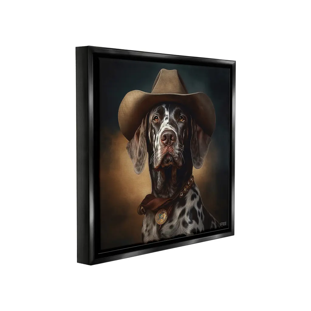 Elevate your home or office to the next level with Stupell Framed Floating Canvas Wall Art. Our premium hand-stretched canvas is mounted securely into a sturdy lightweight frame. The museum-style gap between the wrapped canvas and the box frame gives the illusion of floating artwork. Stupell Wall Art is made in the USA.Features: Dimensions: 18 x 1.7 x 18 Frame, 17 x 1.5 x 17 Canvas ArtFloating Frame Canvas Products are available in sizes 18"x18" and 25"x25". All Floating Frame Canvas Products have a 1.7" Depth.Wall Art is Ready to Hang with Hardware Free Hanging. No Installation required. For Easy Set Up Lean or Layer Artwork on Shelf or Against Wall. Artwork is Permently Fixed into the Frame.Our elevated 1.7" Thick Floating Frame is the perfect complement to our canvas style Wall Art. We use only the highest quality inks in house with industry leading printing solutions. Canvas is hand stretched over a durable wood foundation and then mounted securly into a Modern Box Frame. Made in the USA.Artwork Relates To: Animal, Mammal, Cowboy Hat, Fashion, Southwestern, Cowboy, Pet, Dog, Dalmatian, PointerDesign by RB
