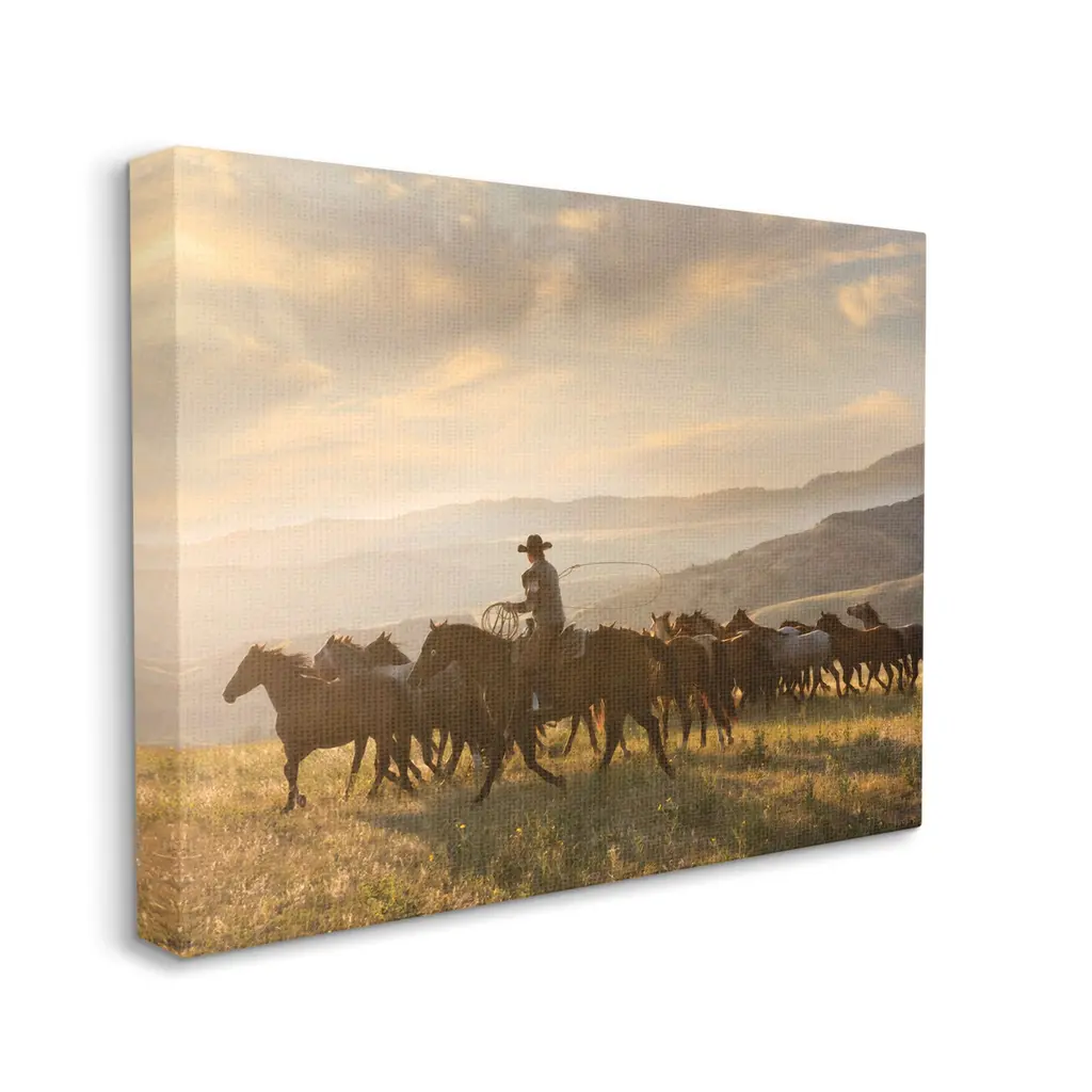 We create our stretched canvas to the highest standards. Using only the highest quality inks and canvas on Mimaki printers, we hand-cut and stretch each piece over a 1.5-inch thick wooden frame for hanging. As a result, the art comes ready to hang on the sturdy ledge with no installation required. Stupell Wall Art is made in the USA.Features: Dimensions: 20 x 1.5 x 16 InchesStretched Canvas Sizes Include Standard: 20 x 1.5 x 16 Large: 30 x 1.5 x 20 X-Large: 40 x 1.5 x 30 Oversized: 48 x 1.5 x 36Wall Art is Ready to Hang with Hardware Free Hanging. No installation required. For Easy Set Up Lean or Layer Artwork on Shelf or Against Wall.Our stretched canvas is created with the highest standards. We use only the highest quality inks and canvas on our in house Mimaki printers, and then hand cut and stretch each piece over a 1.5 inch thick wooden frame for hanging. Made In USA.Artwork Relates To: Animal, Horse, Mammal, Person, Saddle, Halter, Cowboy, Lasso, Rodeo, PhotographyDesign by PBurchettePhoto