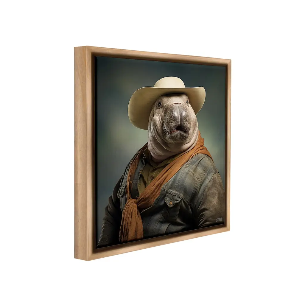 Stupell Cowboy Manatee Portrait Framed Floater Canvas Wall Art Design By Rb - 25 X 25 - Brown