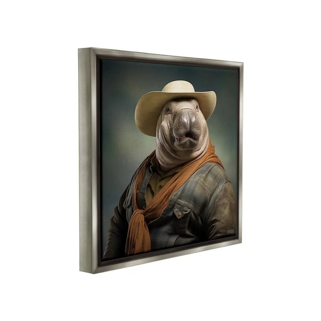 Stupell Cowboy Manatee Portrait Framed Floater Canvas Wall Art Design By Rb - 25 X 25 - Grey